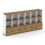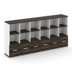 Concept Шкаф 2 узкие секции, 4 ниши CN.STU-422 RPB B Дуб Мали/Белый Бриллиант/Металл Черный/Прозрачн