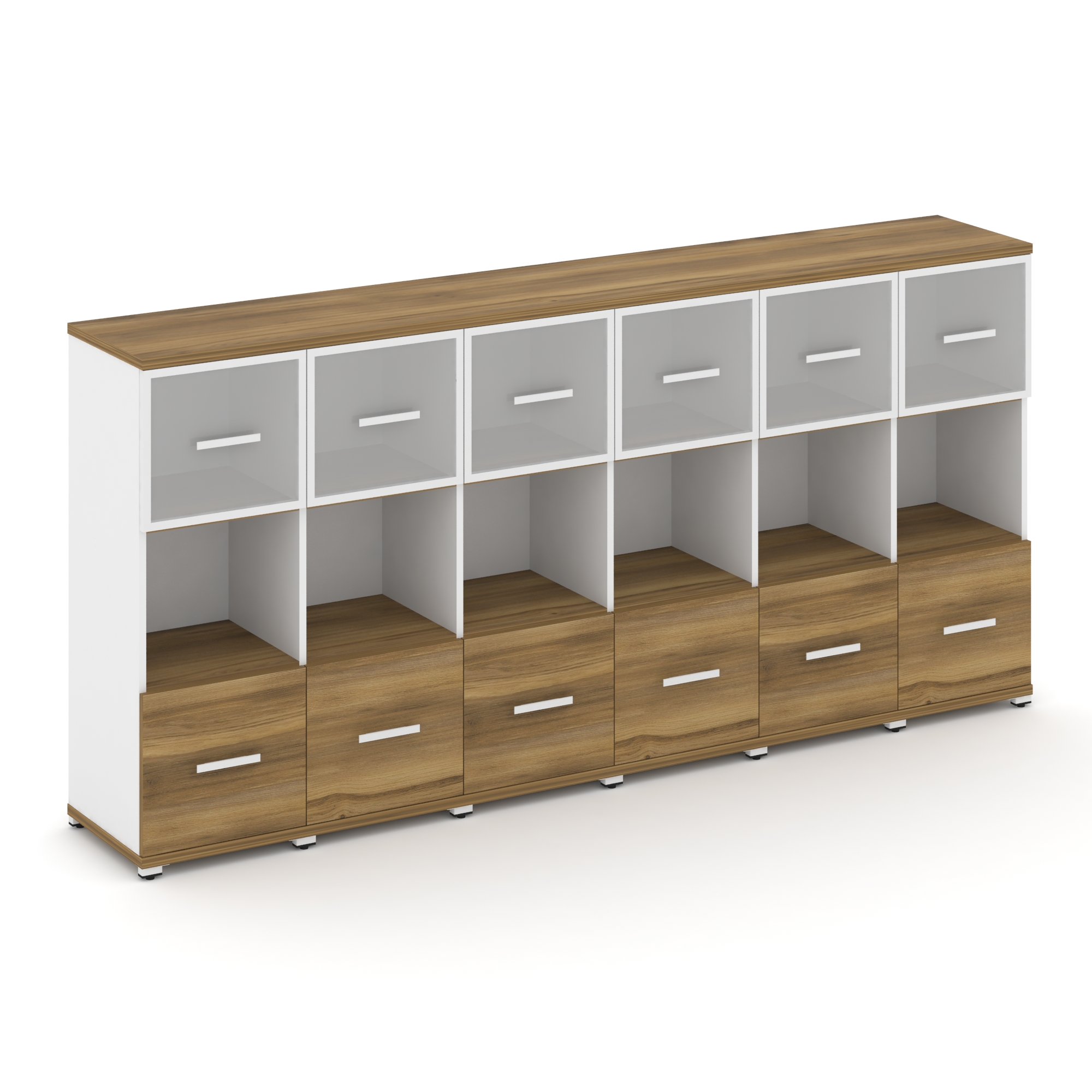 Concept Шкаф 6 узких секций, 3 ниши CN.STU-365 RMW W Дуб Винченцо/Белый Бриллиант/Металл Белый/Сатин
