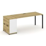 Concept Стол рабочий с опорным распаш. шкафом CN.SP-220 W Дуб Винченцо/Белый Бриллиант/Металл Белый