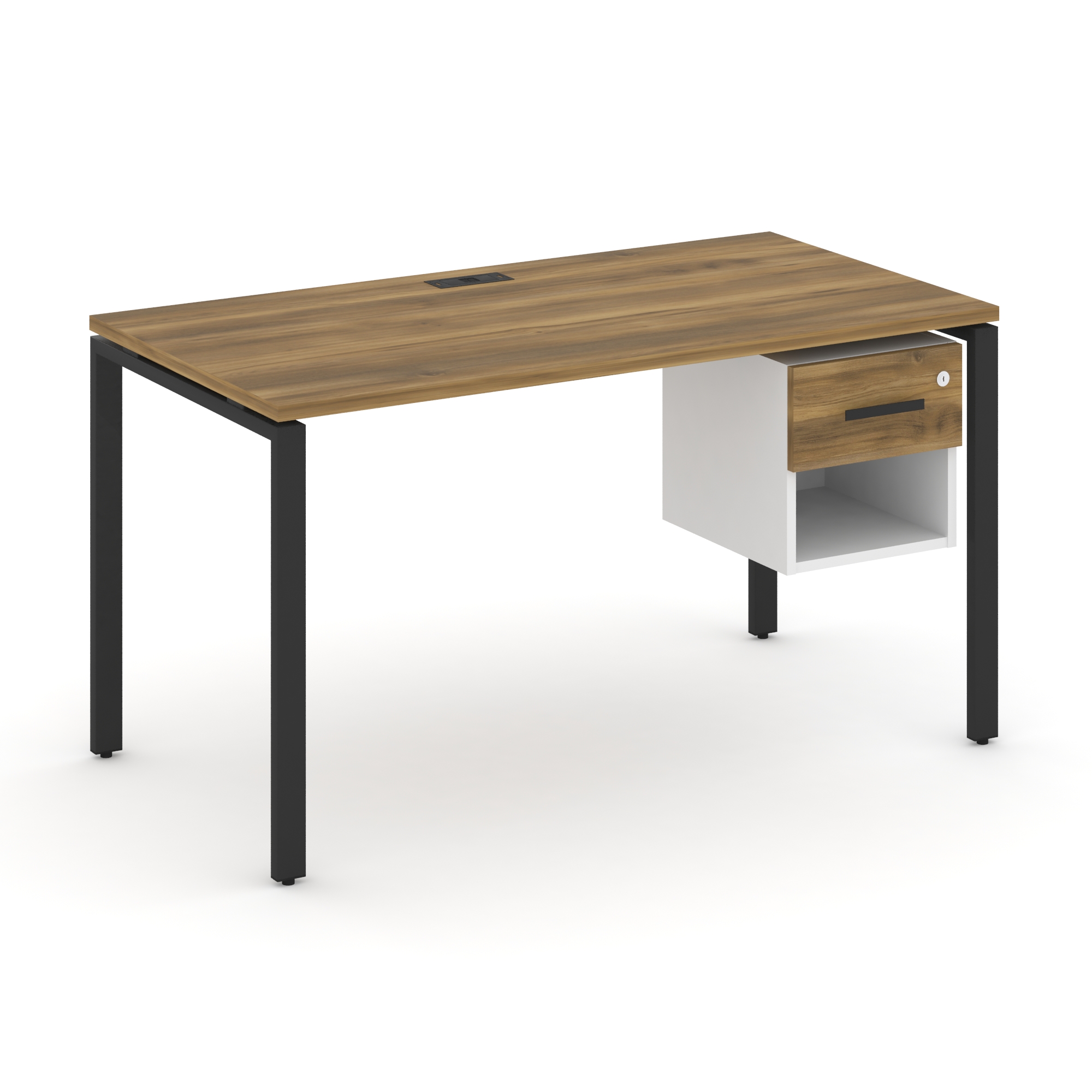Concept Стол рабочий с подвесной тумбой с 2 открытыми нишами CN.SP-107 Кобо/Белый Бриллиант/Металл Б