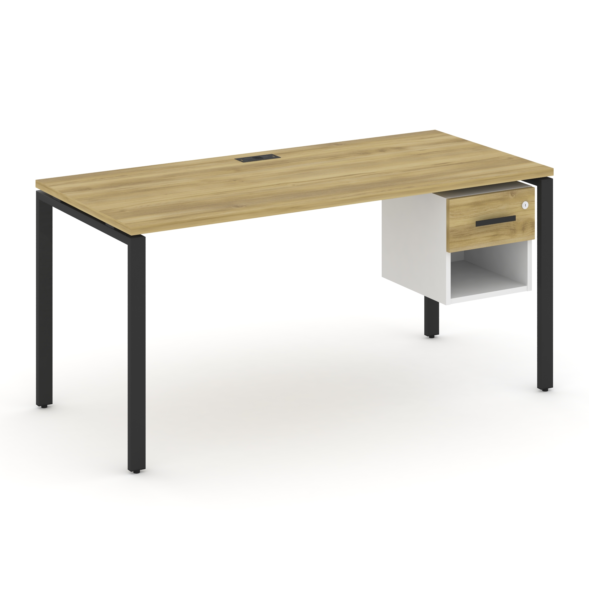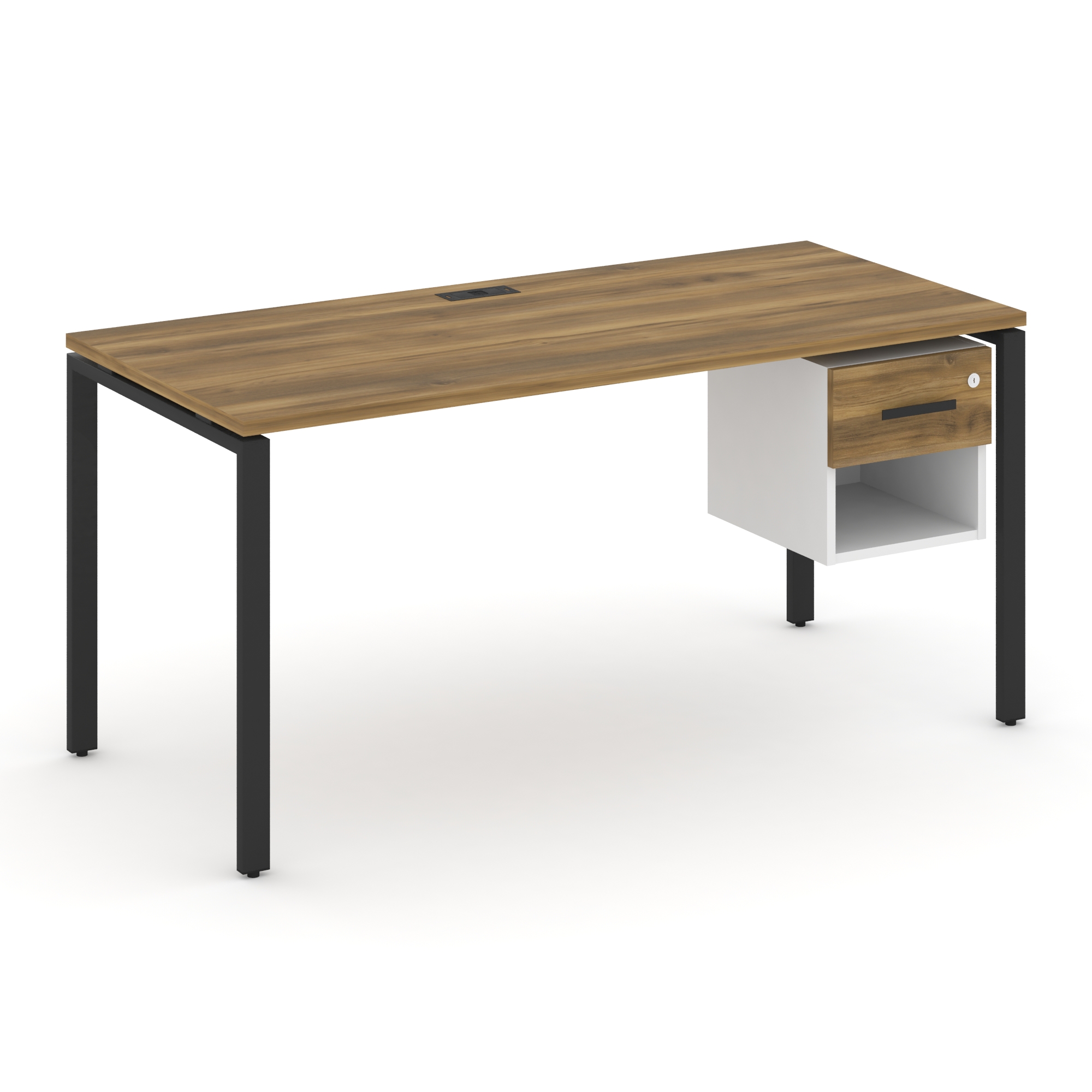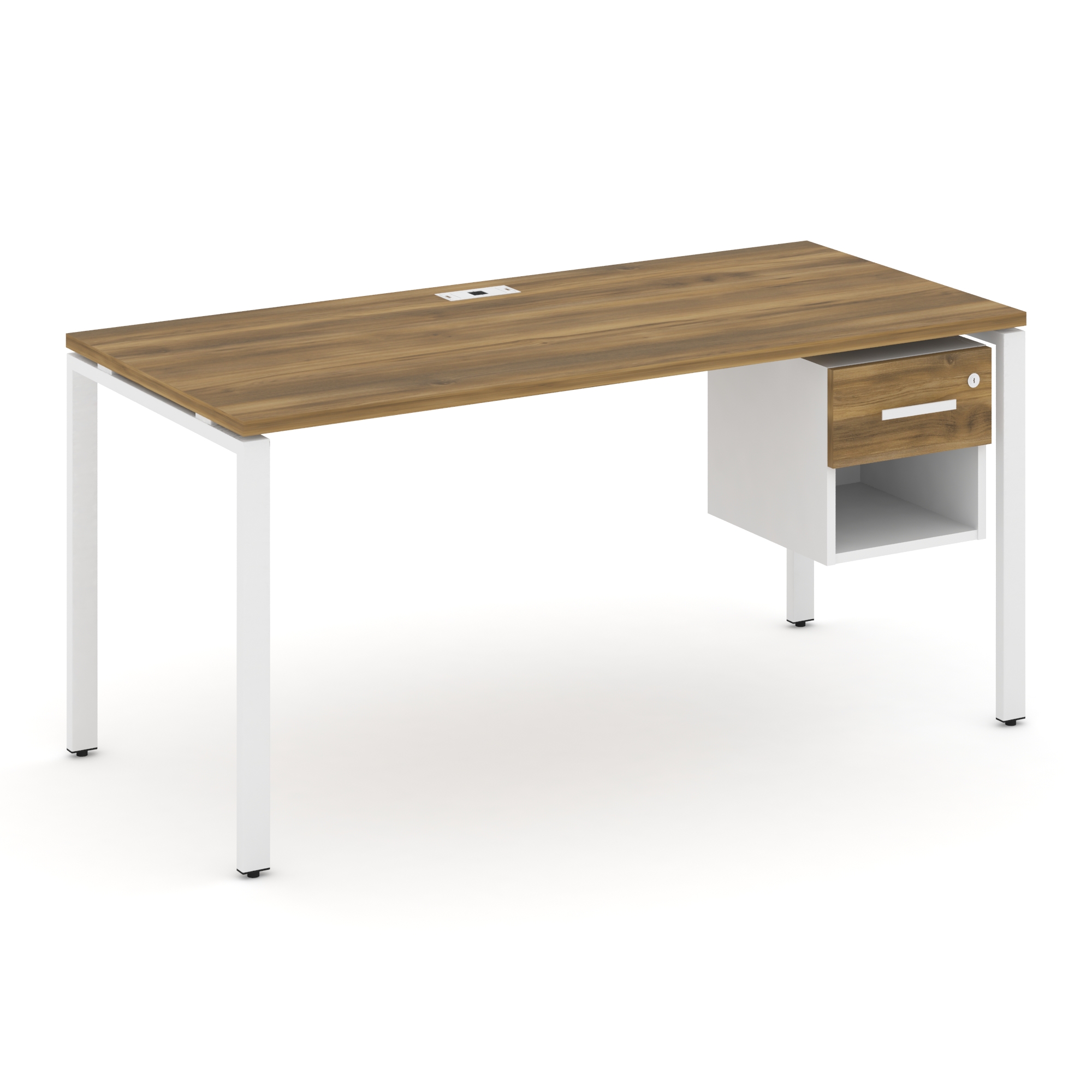 Concept Стол рабочий с подвесной тумбой с 2 открытыми нишами CN.SP-107 Кобо/Белый Бриллиант/Металл Б