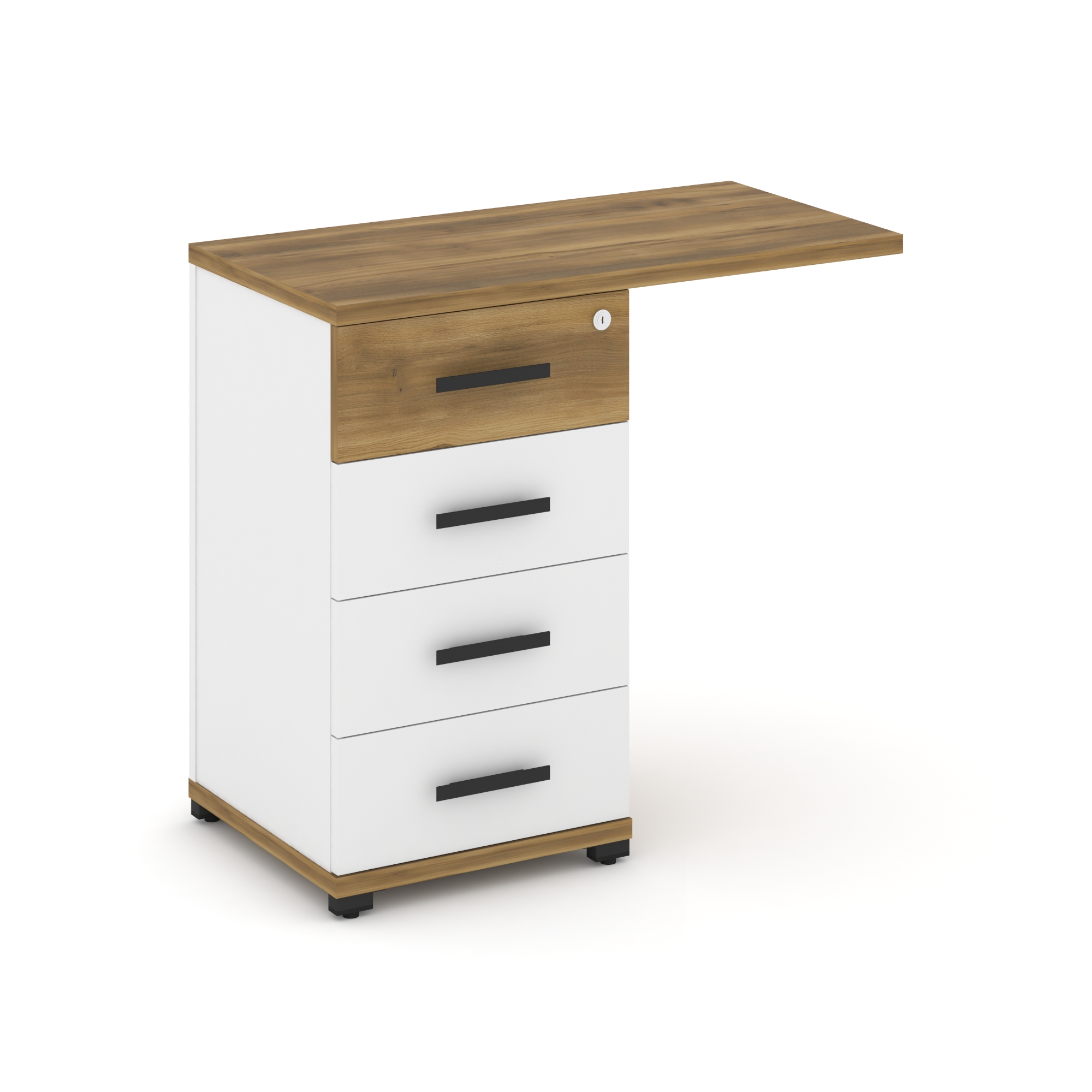 Concept Тумба приставная узкая со свесом 4 ящ. CN.TUS-001 W Дуб Винченцо/Белый Бриллиант/Металл Белы
