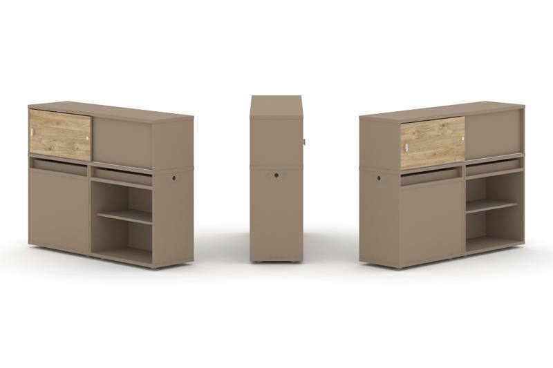 Estetica Набор №14. Тумба двойная+низкая надставка ES.NB.2N-14 Латте/Сатин 1500*410*1135
