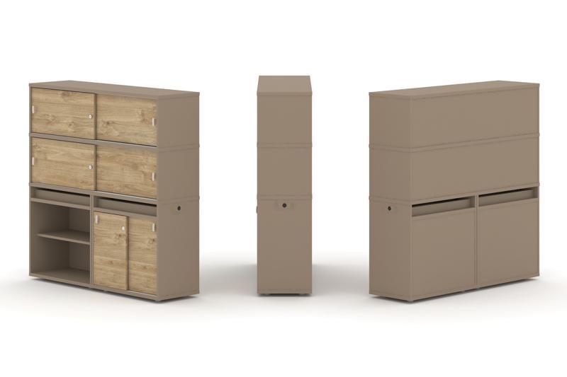 Estetica Набор №14. Тумба двойная+высокая надставка ES.NB.2V-14 Латте/Сатин 1500*410*1520