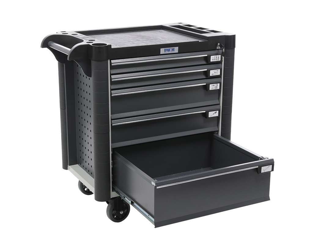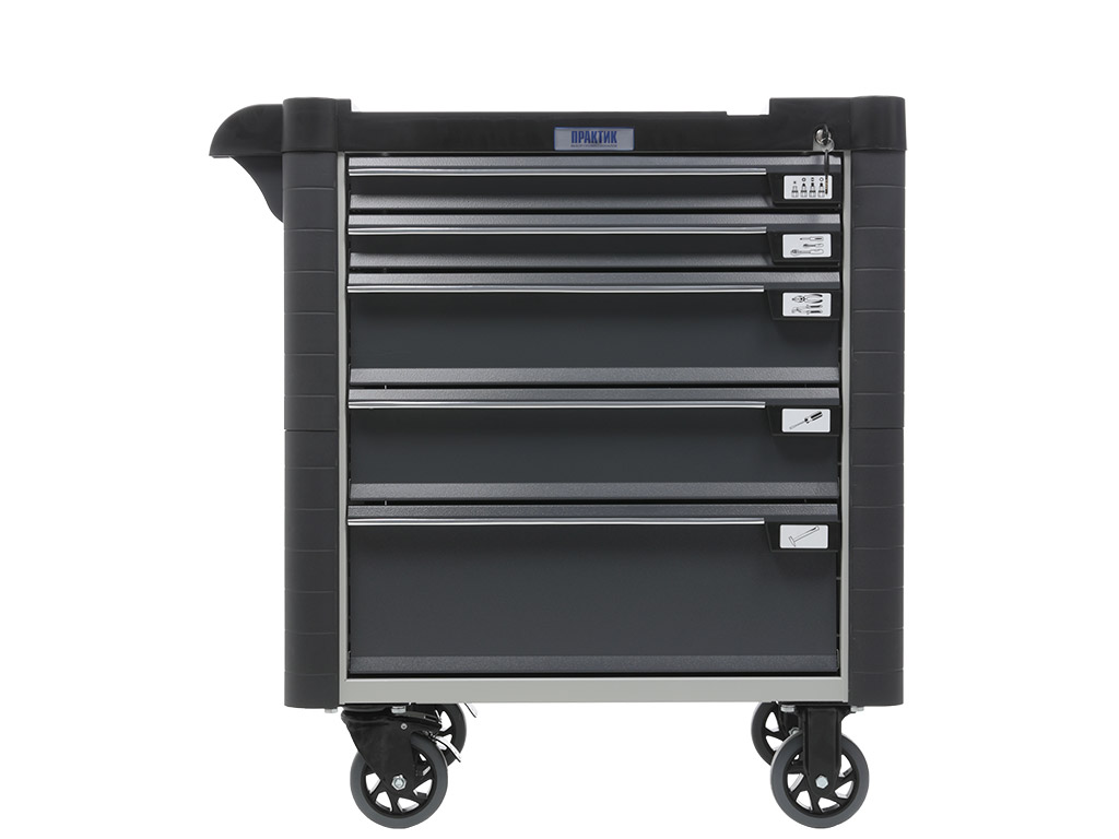 - Топ (пластик черного цвета) оснащён ложементами под инструменты для организации, хранения и удобства использования во время выполнения работ. Нагрузка на ТОП – 40 кг