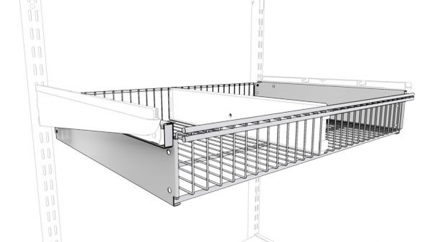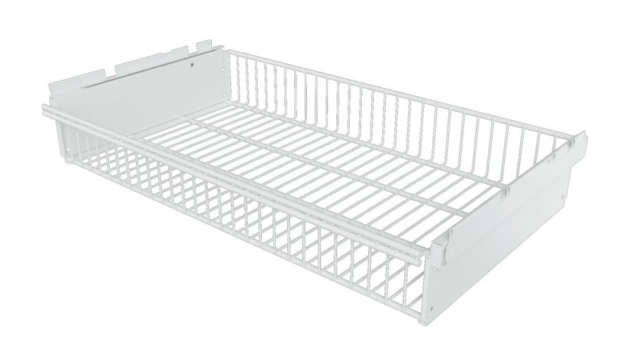 Выдвижная корзина делается из проволоки, такой же как и сетчатые полки. Средний вариант по цене, но имеющий наибольшую грузоподъемность. Учитывая крупноячеистую структуру, выдвижные корзины являются отличным вариант для хранения одежды, поскольку обеспечивается отличная вентиляция вещей.