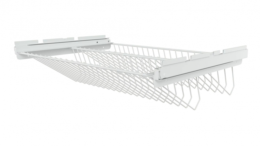 Кронштейны крепятся на стойку в пазы. Для установки кронштейна необходимо вставить его в паз стойки под углом 45 градусов, после чего опустить. На кронштейн крепятся все основные элементы гардеробной системы. Конструкция кронштейна обеспечивает крепление элементов гардеробной системы простым защелкиванием. Порошковое полимерное покрытие белого цвета (RAL 9016).