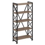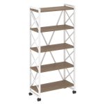 Loft Стеллаж на колесных опорах-5 полок VR.L-MST.K-5.4V Дуб Аттик/Металл Белый 800*400*1704