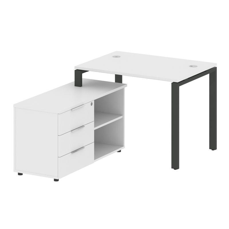 Metal System Рабочая станция с тумбой на П-образном м/к БП.РС-СТС-2.1 (L) Белый/Металл Серый 1100*15