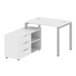 Metal System Рабочая станция с тумбой на П-образном м/к БП.РС-СТС-2.3 (L) Белый/Металл Серый 1500*15