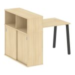 Metal System Стол письменный с шкафом-купе на А-образном м/к БА.РС-СШК-3.5 Т Акация Лорка/Металл Сер