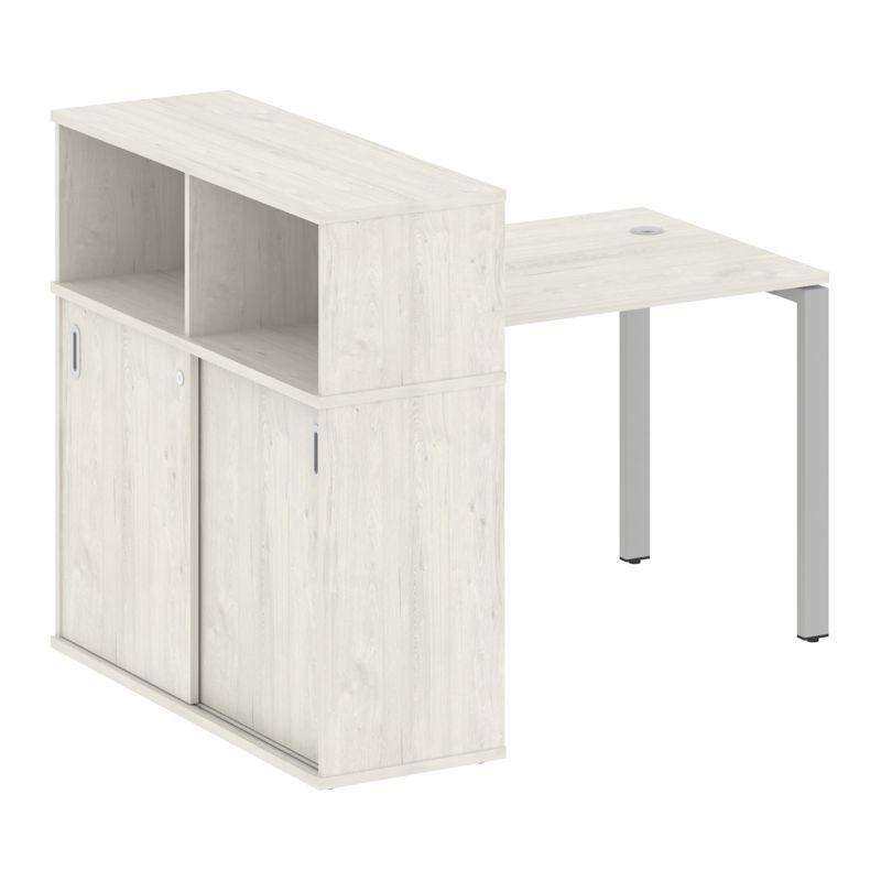 Metal System Рабочая станция с тумбой на П-образном м/к БП.РС-СТС-2.1 (L) Белый/Металл Серый 1100*15