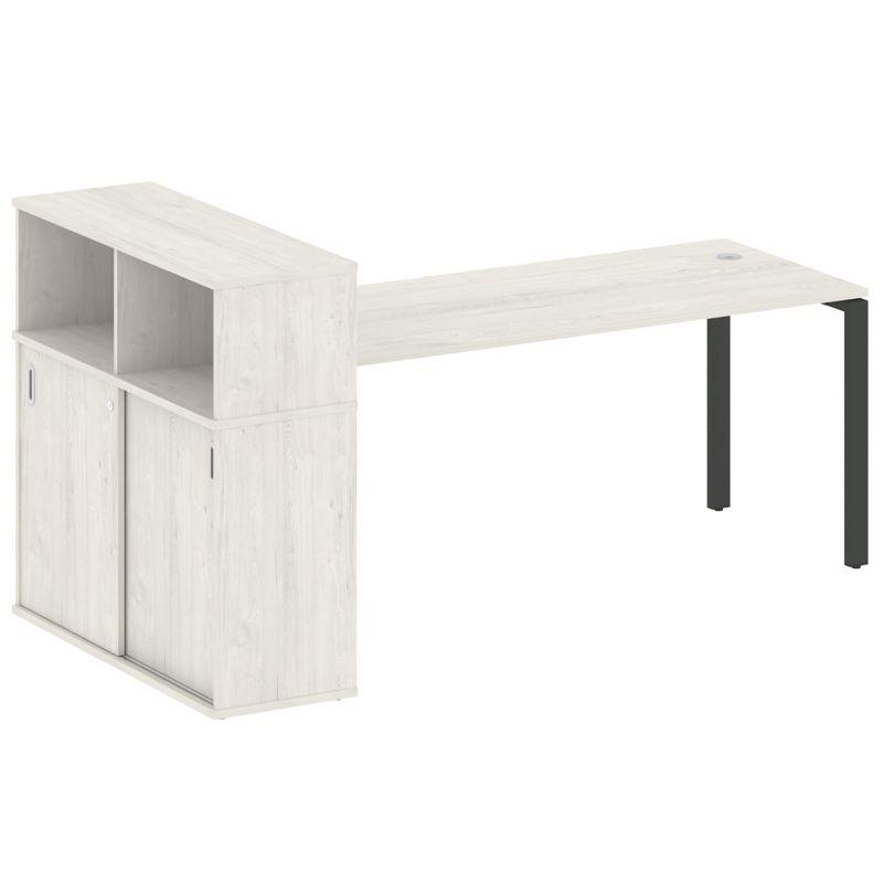 Metal System Рабочая станция с тумбой на П-образном м/к БП.РС-СТС-2.3 (L) Белый/Металл Серый 1500*15