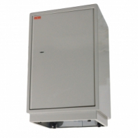 Шкаф представляет собой цельносварную металлическую конструкцию прямоугольной формы, соединение элементов которой выполнены методом сварки сплошным швом по контуру прилегания элементов. Корпус и дверь шкафа изготовлены из стального листа толщиной 1,5мм. Дверь изнутри усилена панелью коробчатого сечения из стального листа толщиной 0,8 мм. В двери шкафа установлен врезной 8-ми сувальдный замок фирмы «ПРО САМ» (Россия). В шкафу КБС-012т располагается отсек ограниченного доступа (трейзер), запираемый на замок «почтового» типа и 1 съемная регулируемая по высоте полка. Шкаф имеет подиум (подставку) высотой 47 мм для возможности размещения его вплотную к стене, а также комплектуется 4-мя роликами для удобства его перемещения. Петли шкафа – внутренние. Окраска — полимерное порошковое покрытие, цвет серый.
