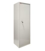 Шкаф представляет собой цельносварную металлическую конструкцию прямоугольной формы, соединение элементов которой выполнены методом сварки сплошным швом по контуру прилегания элементов. Корпус и дверь шкафа изготовлены из стального листа толщиной 1,2 мм. Дверь изнутри усилена панелью коробчатого сечения из стального листа толщиной 0,8 мм. В двери шкафа установлен врезной 6-ти сувальдный замок фирмы «ПРО САМ» (Россия). В шкафу КБC-021н располагаются 3 съемные регулируемые по высоте полки. Шкаф имеет подиум (подставку) высотой 47 мм для возможности размещения его вплотную к стене. Петли шкафа – внутренние. Окраска — полимерное порошковое покрытие, цвет серый.