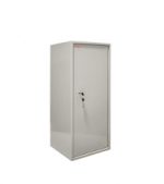 Шкаф представляет собой цельносварную металлическую конструкцию прямоугольной формы, соединение элементов которой выполнены методом сварки сплошным швом по контуру прилегания элементов. Корпус и дверь шкафа изготовлены из стального листа толщиной 1,2 мм. Дверь изнутри усилена панелью коробчатого сечения из стального листа толщиной 0,8 мм. В двери шкафа установлен врезной 6-ти сувальдный замок фирмы «ПРО САМ» (Россия).В верхней части шкафа КБС-041тн — располагается отсек ограниченного доступа (трейзер), запираемый на замок «почтового» типа и 1 съемная регулируемая по высоте полка. Петли шкафа – внутренние. Окраска — полимерное порошковое покрытие, цвет серый.