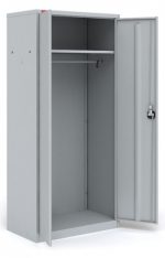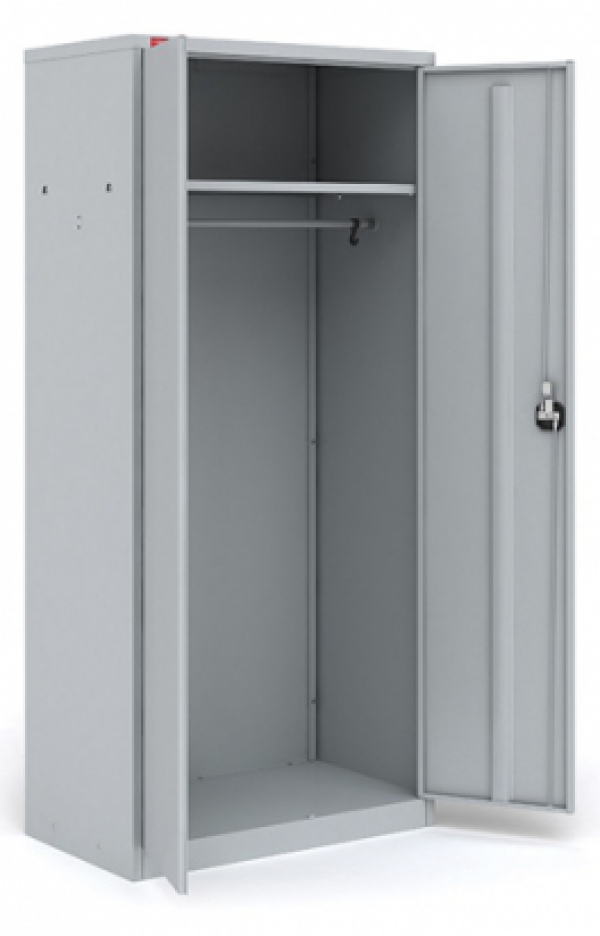 Шкаф разборный металлический. Предназначен для хранения верхней одежды в офисах. В отделении: полка для головного убора, перекладина для вешалки и крючки для одежды, замок повышенной секретности (ригельная система). Полимерное порошковое покрытие светло-серого цвета (RAL 7035).
