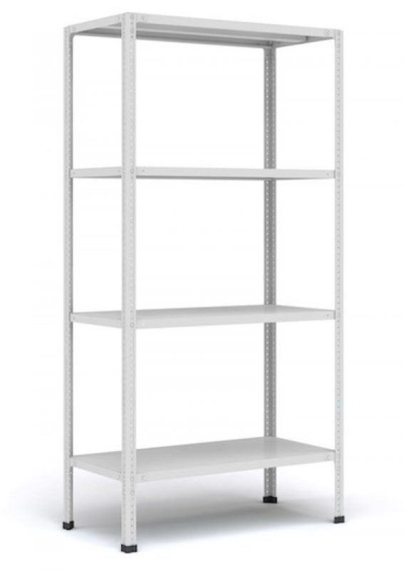 Комплектация: 4 стойки 1800 мм, 4 полки 300х750 мм, крепеж, пластиковые подпятники