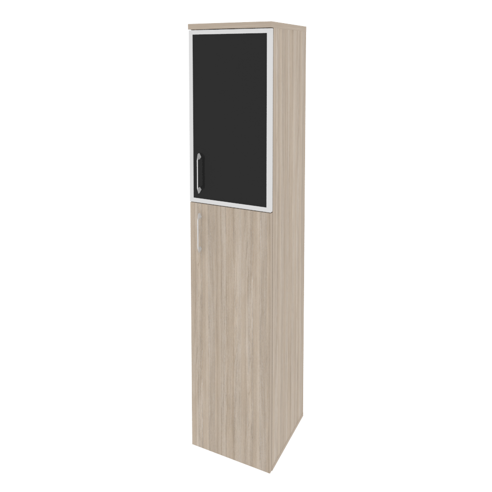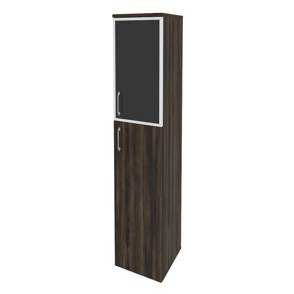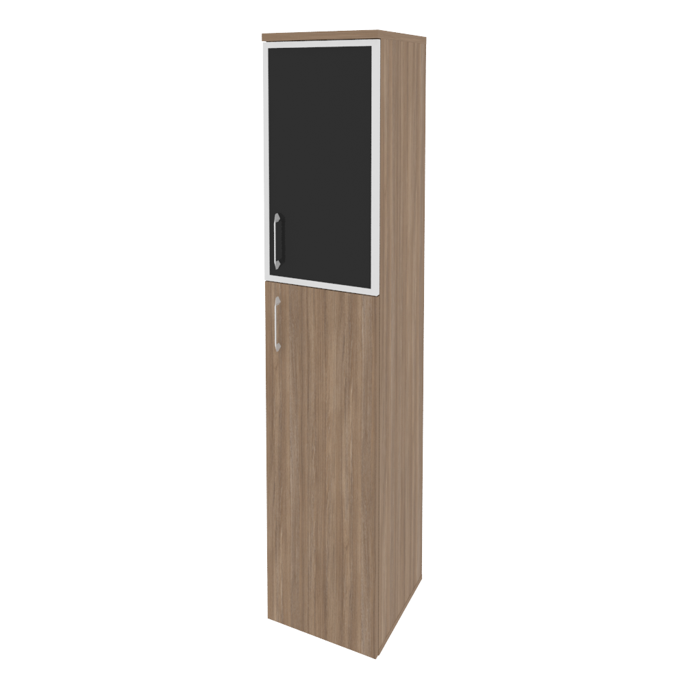 Onix Шкаф высокий узкий правый O.SU-1.7 R (R) black Тиквуд Светлый/Белый Бриллиант/Cтекло Black 400*