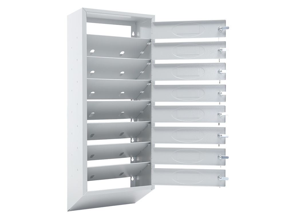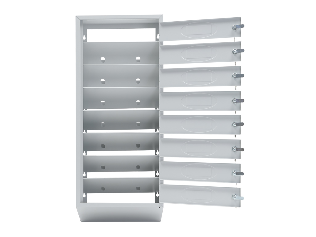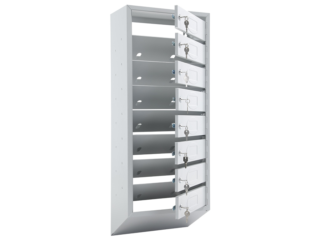 - Каждая секция имеет дверцу, запирающуюся индивидуальным ключевым замком (2 ключа в комплекте).