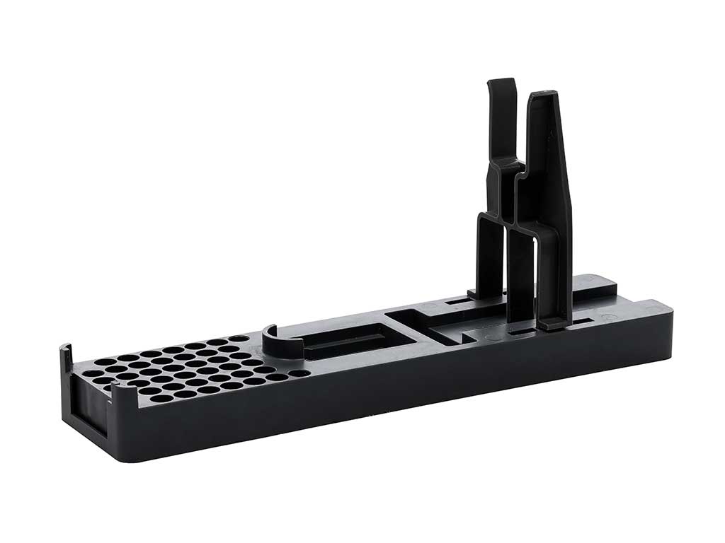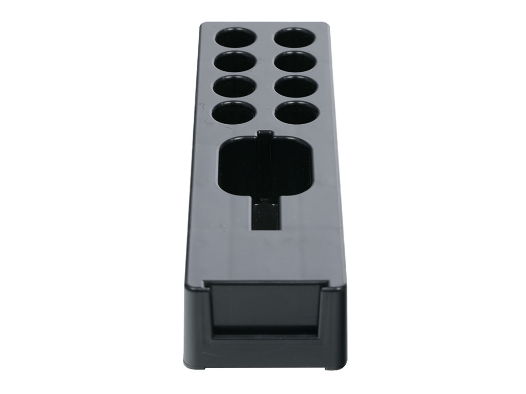 - Оружие фиксируется вертикально ствольной частью в пазу подставки-колодки. Патроны в количестве 8 штук, вставляются в колодку.