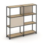 Shelf Mobile Стеллаж 4 уровня 2 секции VR.LT-STK-411.12 Тиквуд Светлый/Металл Антрацит 2370*400*1523
