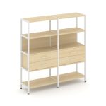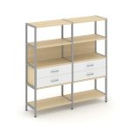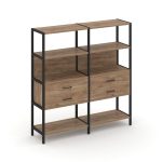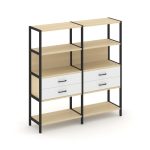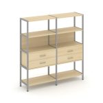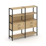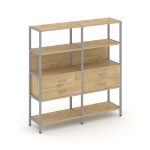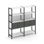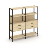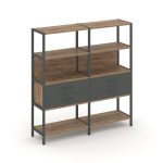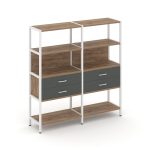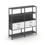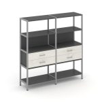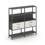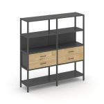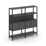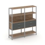 Shelf System Двухсекционный стеллаж четырехярусный с ящиками SN.STM-422 Акация Лорка/Металл Антрацит