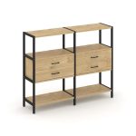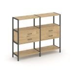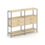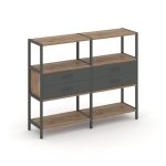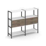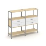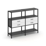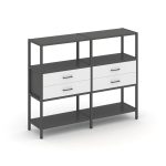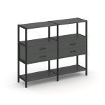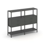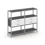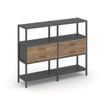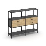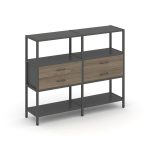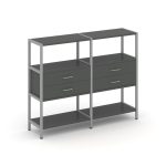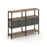 Shelf System Двухсекционный стеллаж четырехярусный с ящиками SN.STM-422 Акация Лорка/Металл Антрацит