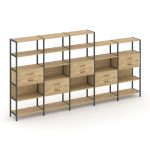 Shelf System Двухсекционный стеллаж трехярусный SN.STM-321 Акация Лорка/Металл Антрацит 1590*400*124