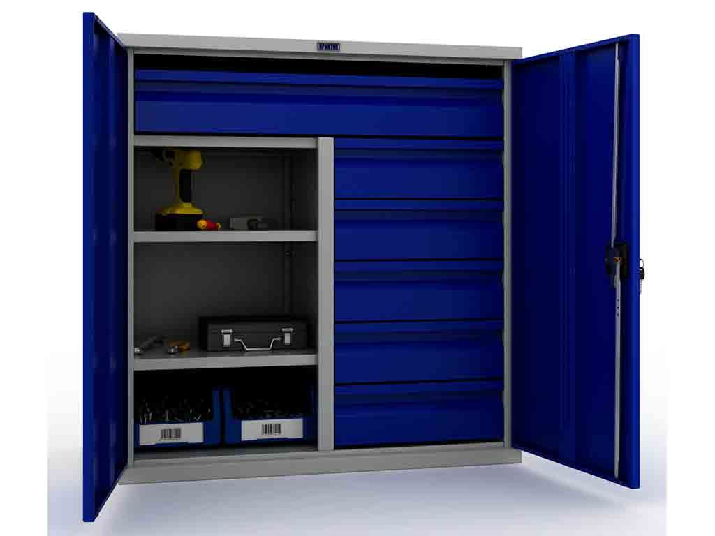Предназначен для хранения инструментов, слесарных приспособлений и других изделий на предприятиях, мастерских, автосервисах.