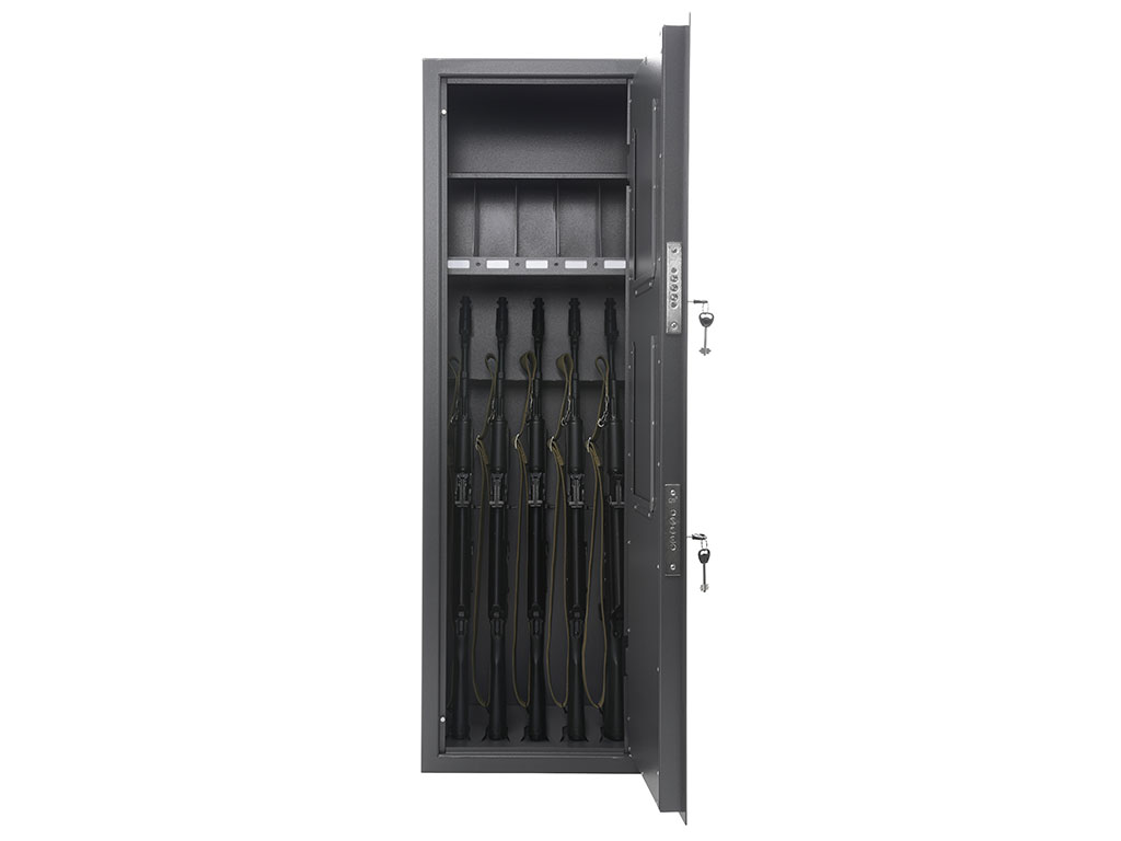 - Возможно изменение внутреннего наполнения шкафа для различного сочетания оружия, боеприпасов и различных принадлежностей.
