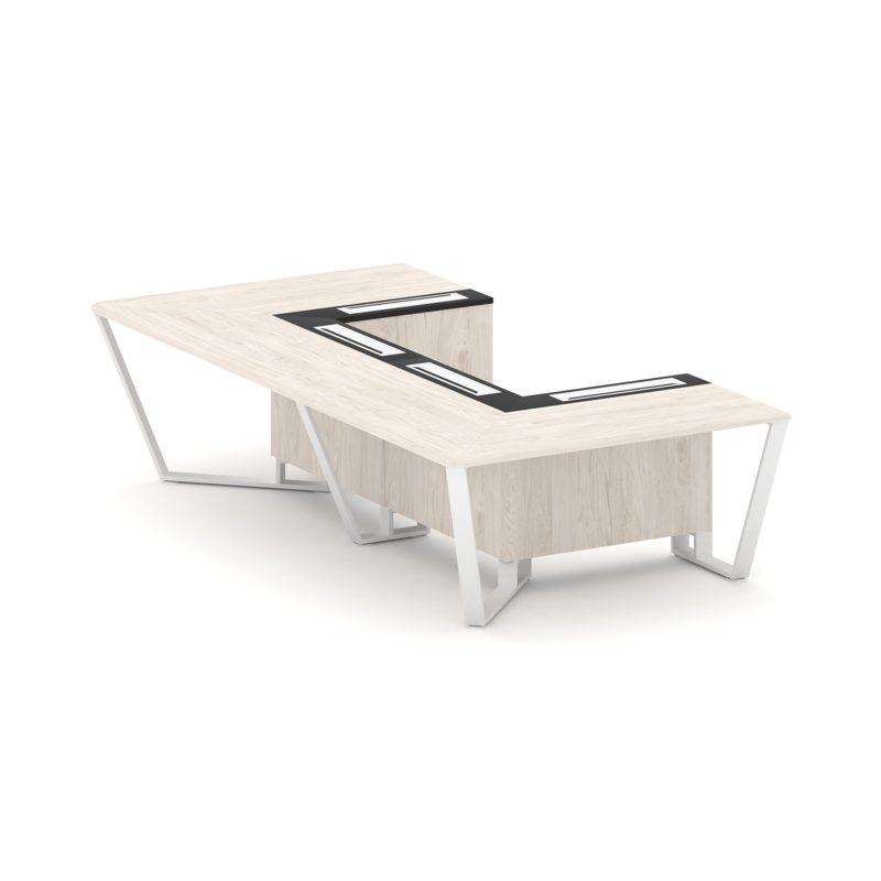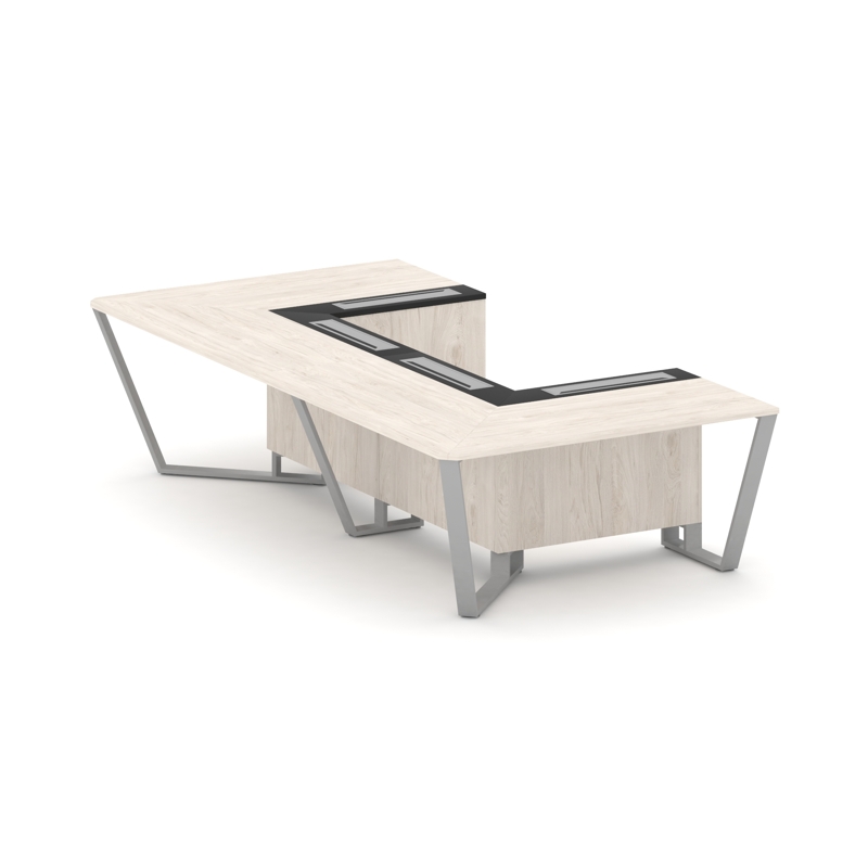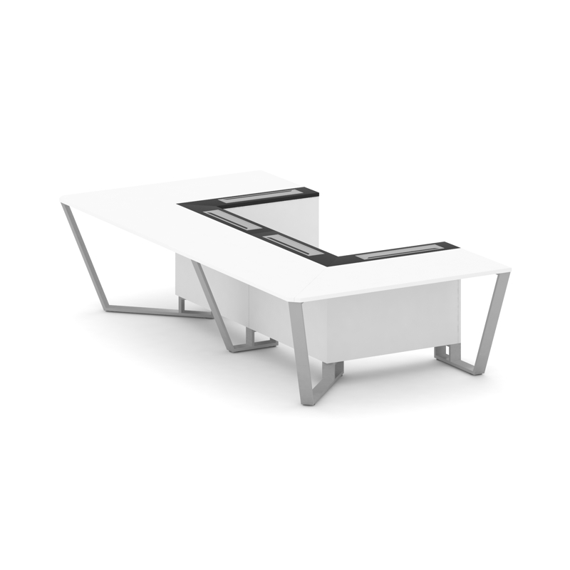 Steel Meet Стол переговорный П-образный MMK-PR.B.SP-07P Белый Бриллиант/Графит Глянец/Нержавеющая Ст
