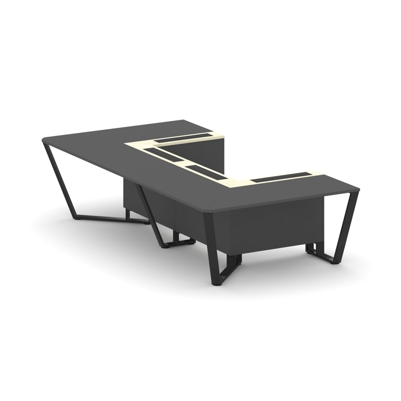 Steel Meet Стол переговорный П-образный KMK-PR.B.SP-07P Антрацит/Ваниль Глянец/Металл Антрацит 1600*