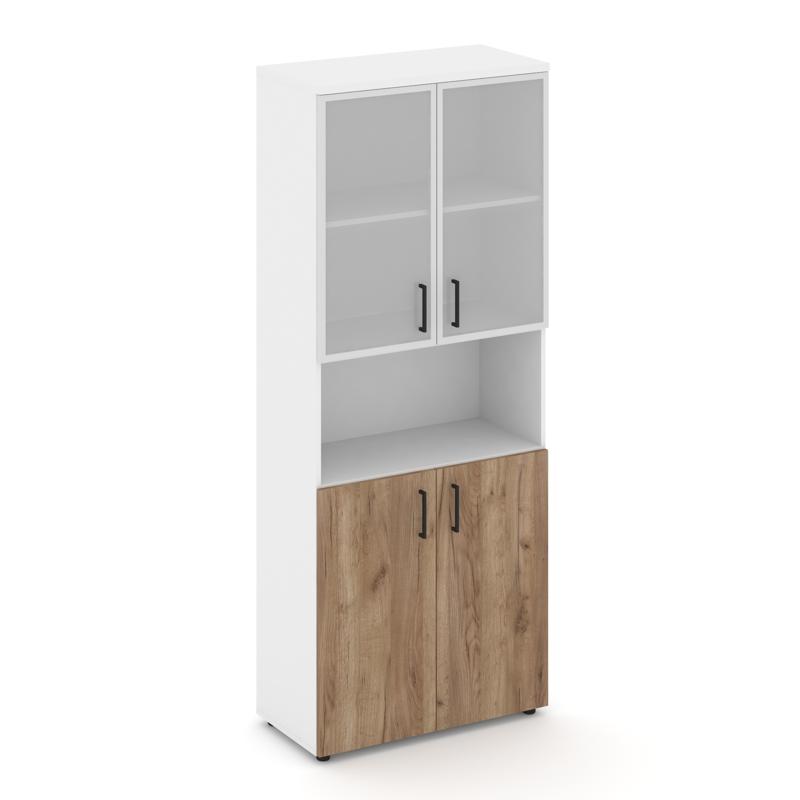 Style Project Шкаф высокий широкий SN.STS.E-105 Тиквуд Светлый/Прозрачный/Черный Ручки 796*400*1982