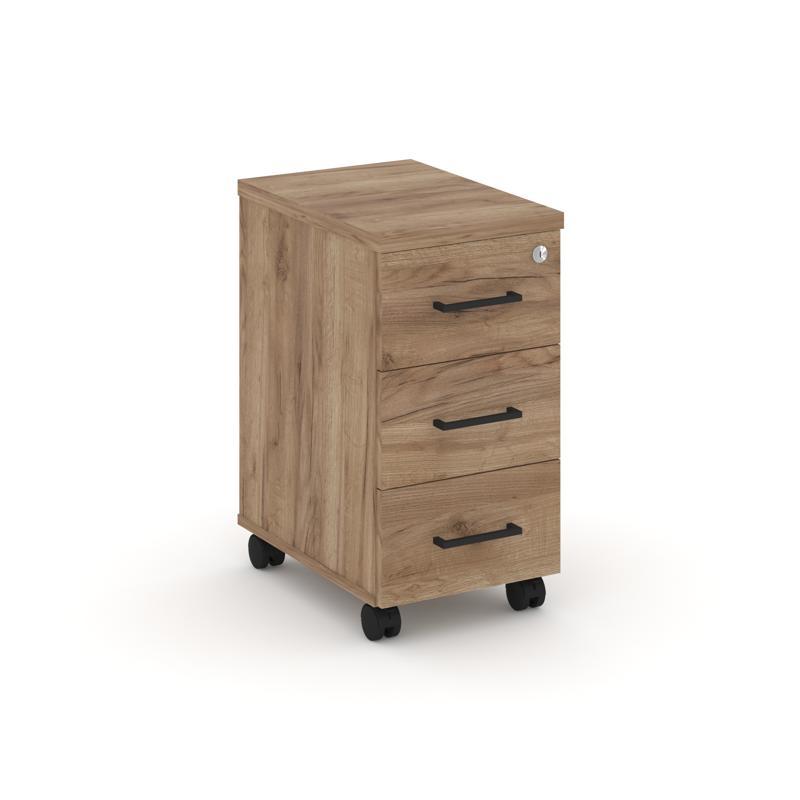 Style Project Тумба мобильная 3 ящ. Стандартные колеса SN.TM-002 Тиквуд Светлый/Черный Ручки 416*460
