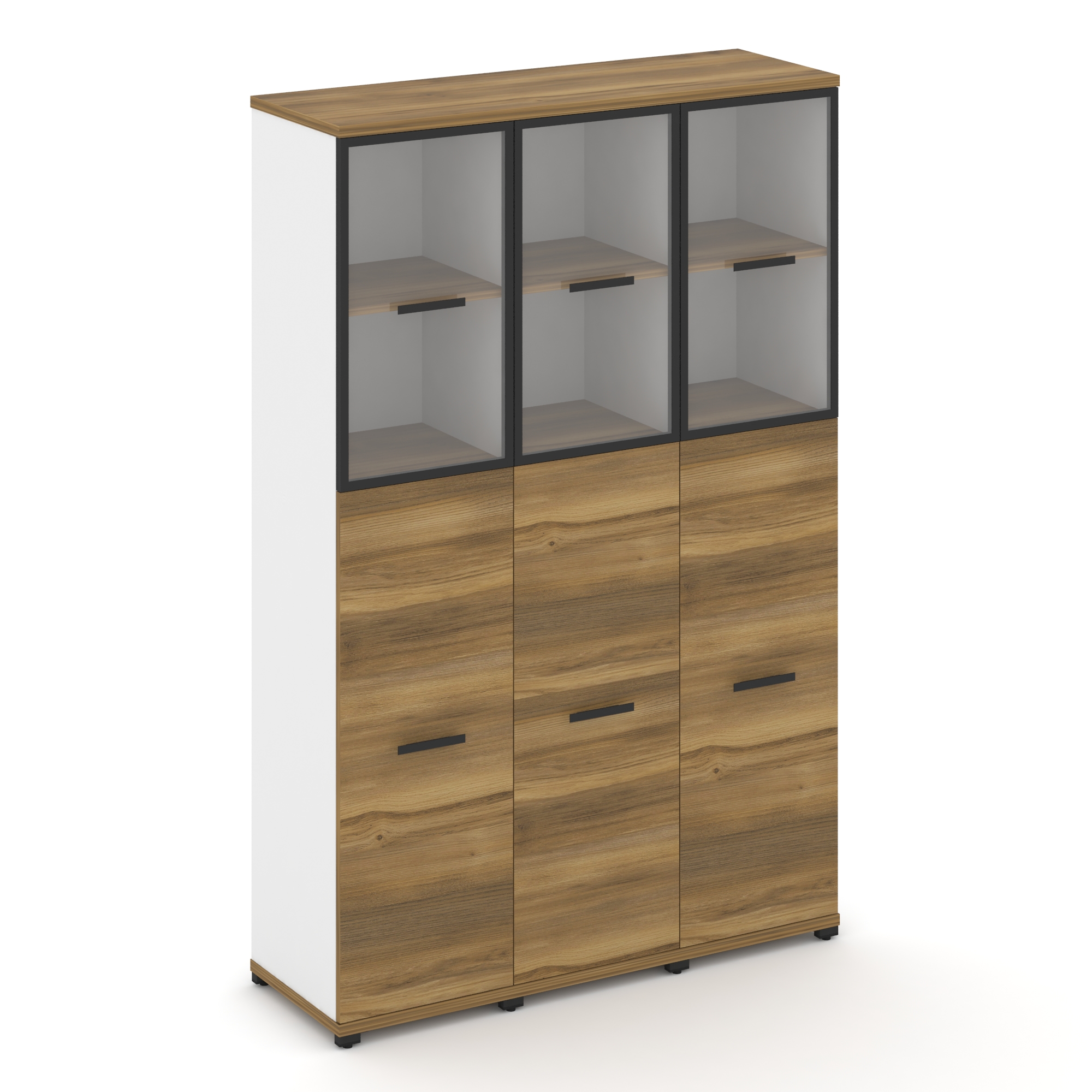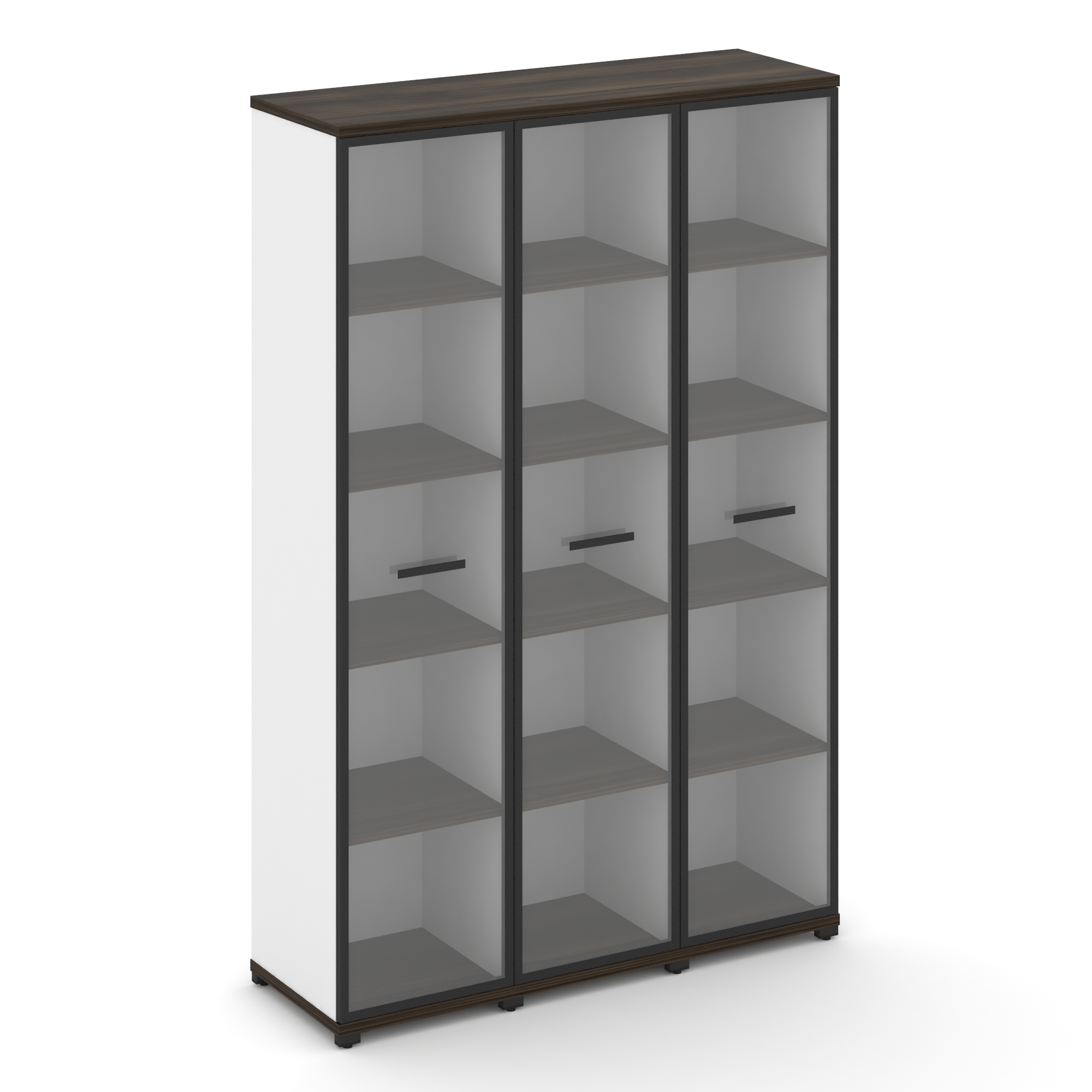 Concept Шкаф 3 узкие секции, 5 ниш CN.STU-538 RPB B Дуб Мали/Белый Бриллиант/Металл Черный/Прозрачны