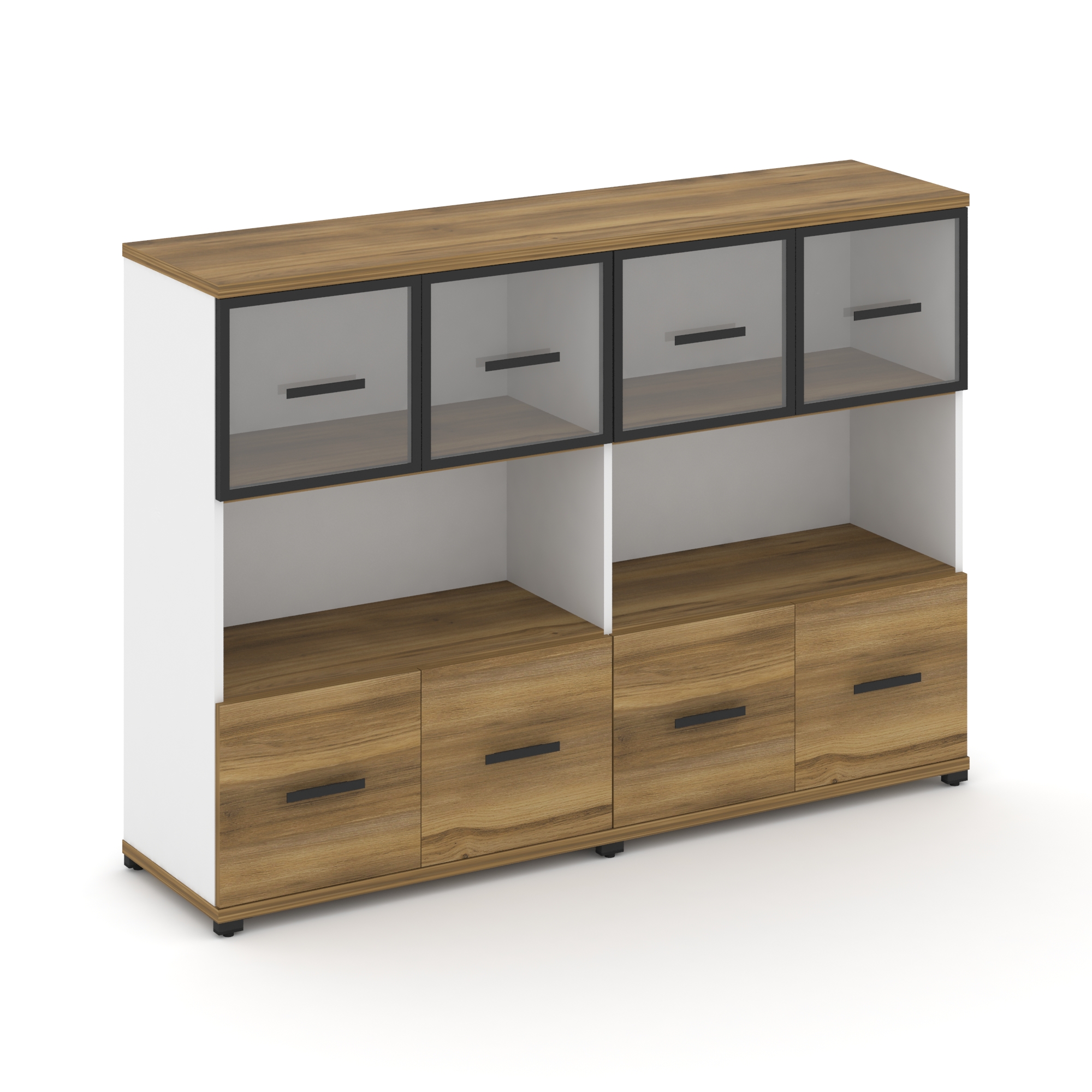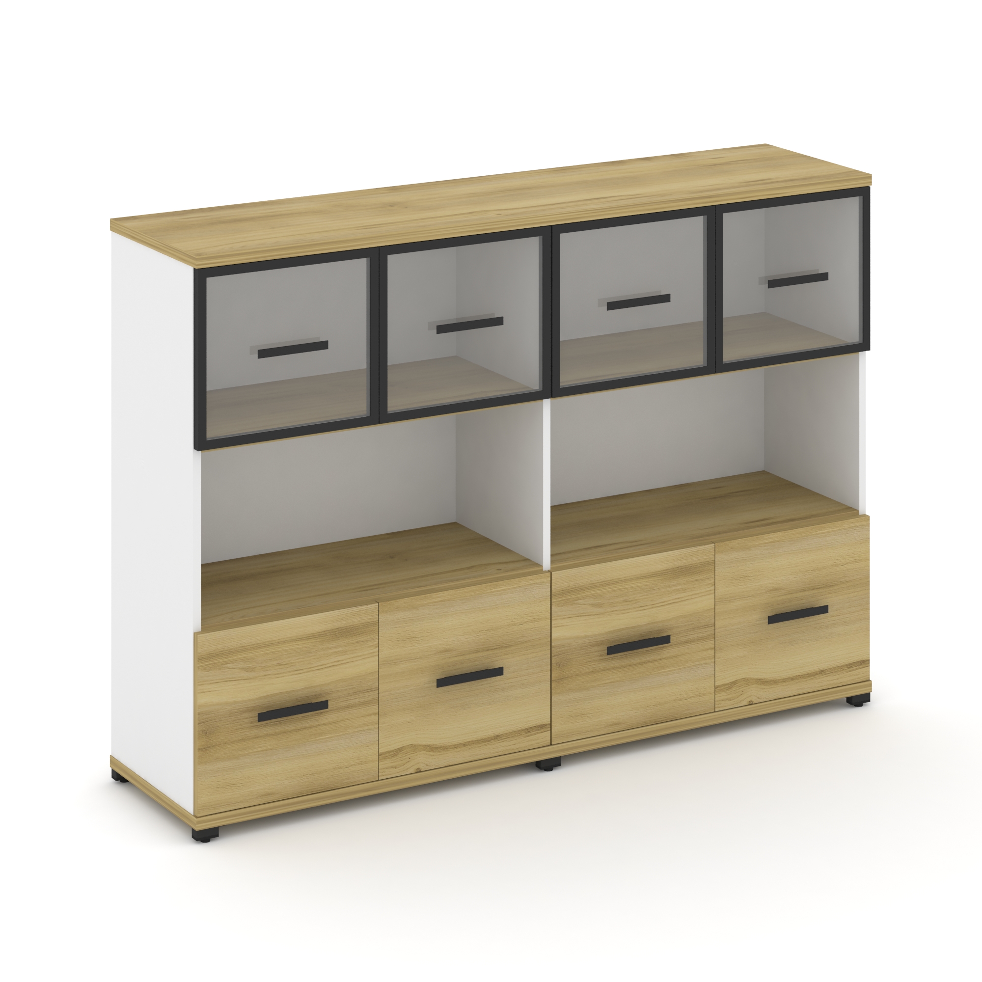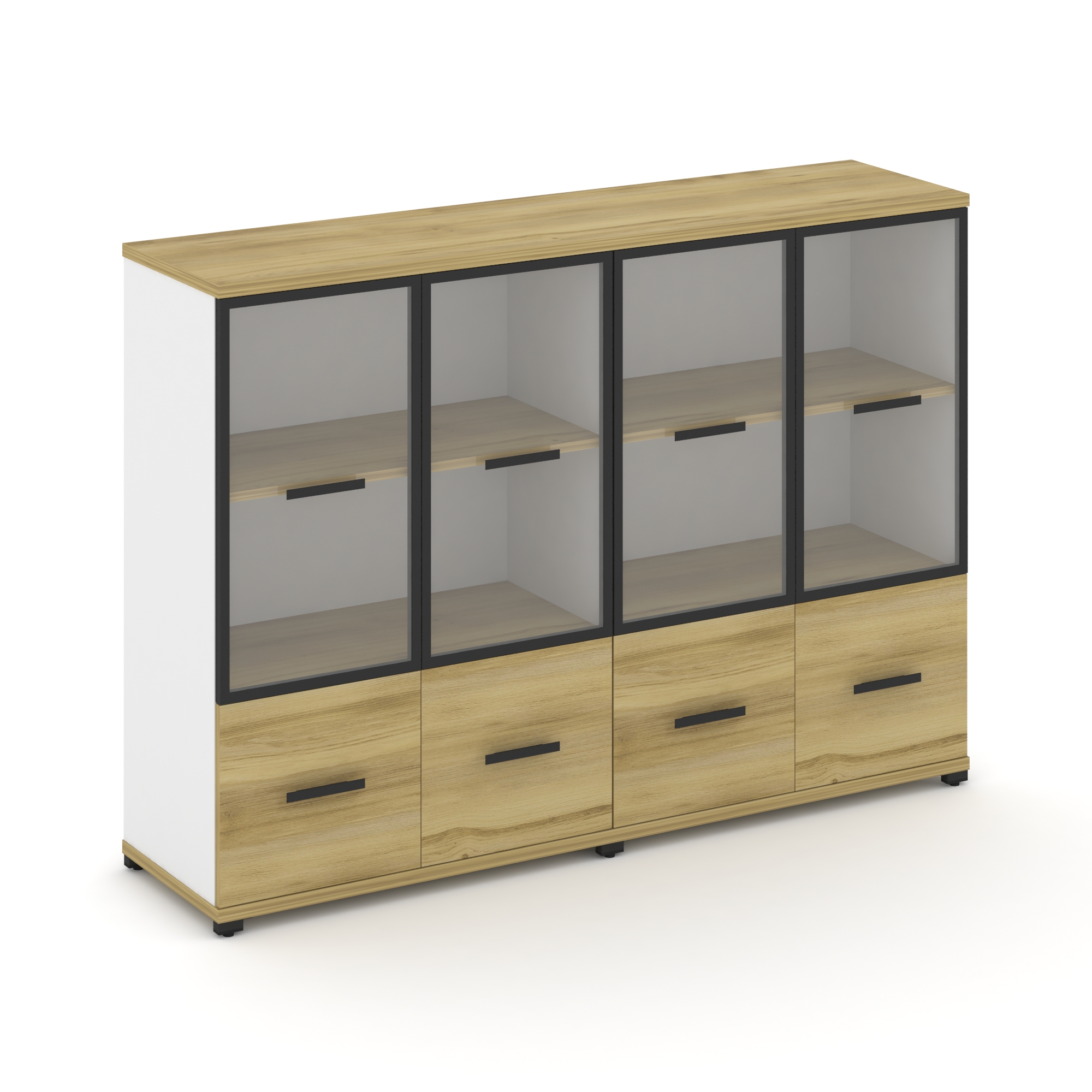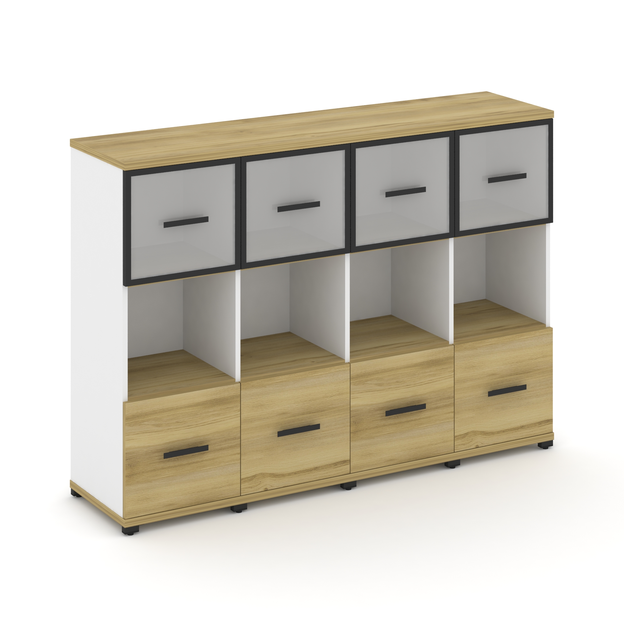 Concept Шкаф 4 узкие секции, 3 ниши CN.STU-342 RMB B Дуб Винченцо/Белый Бриллиант/Металл Черный/Сати