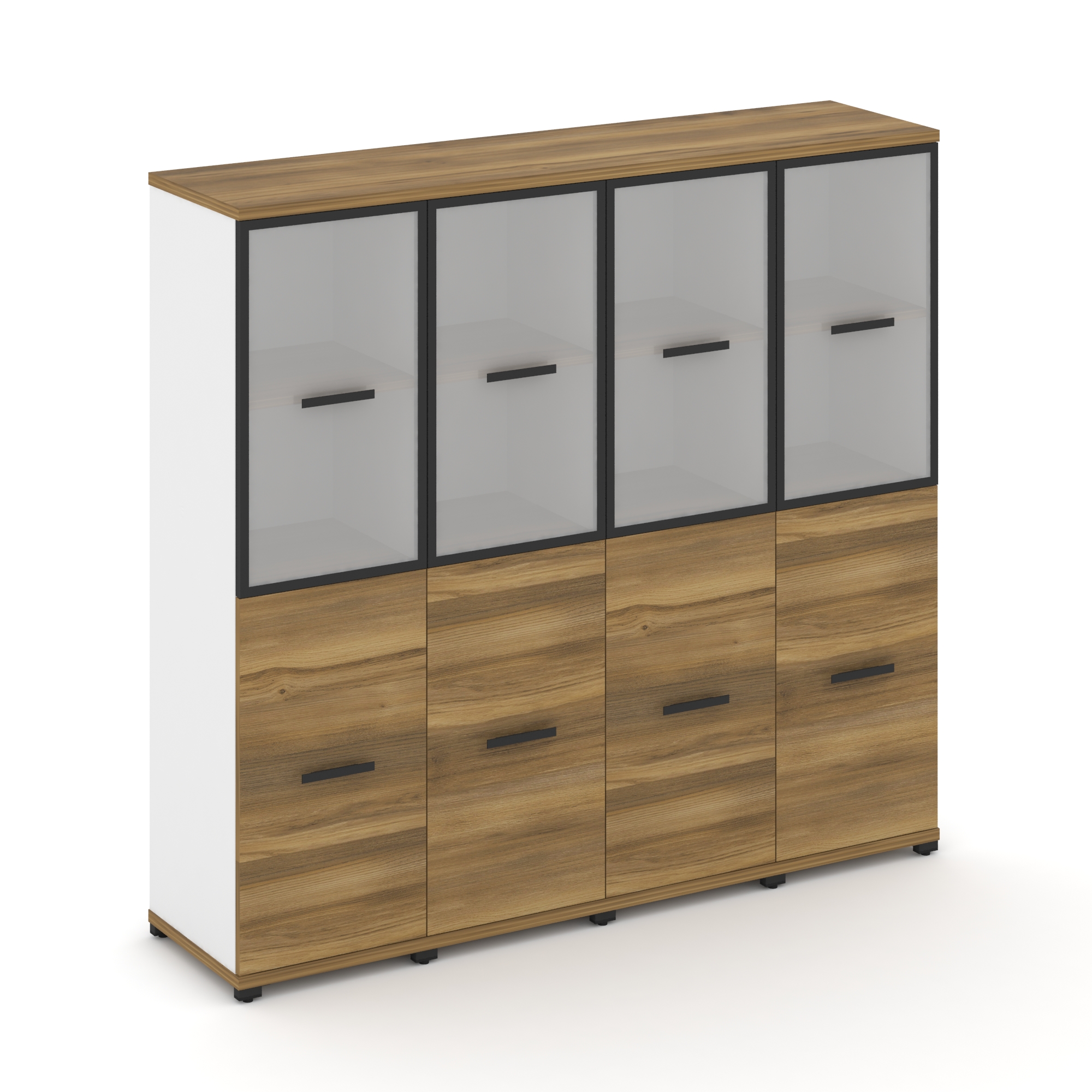 Concept Шкаф 2 широкие секции, 4 ниши CN.STS-424 RPB B Дуб Мали/Белый Бриллиант/Металл Черный/Прозра