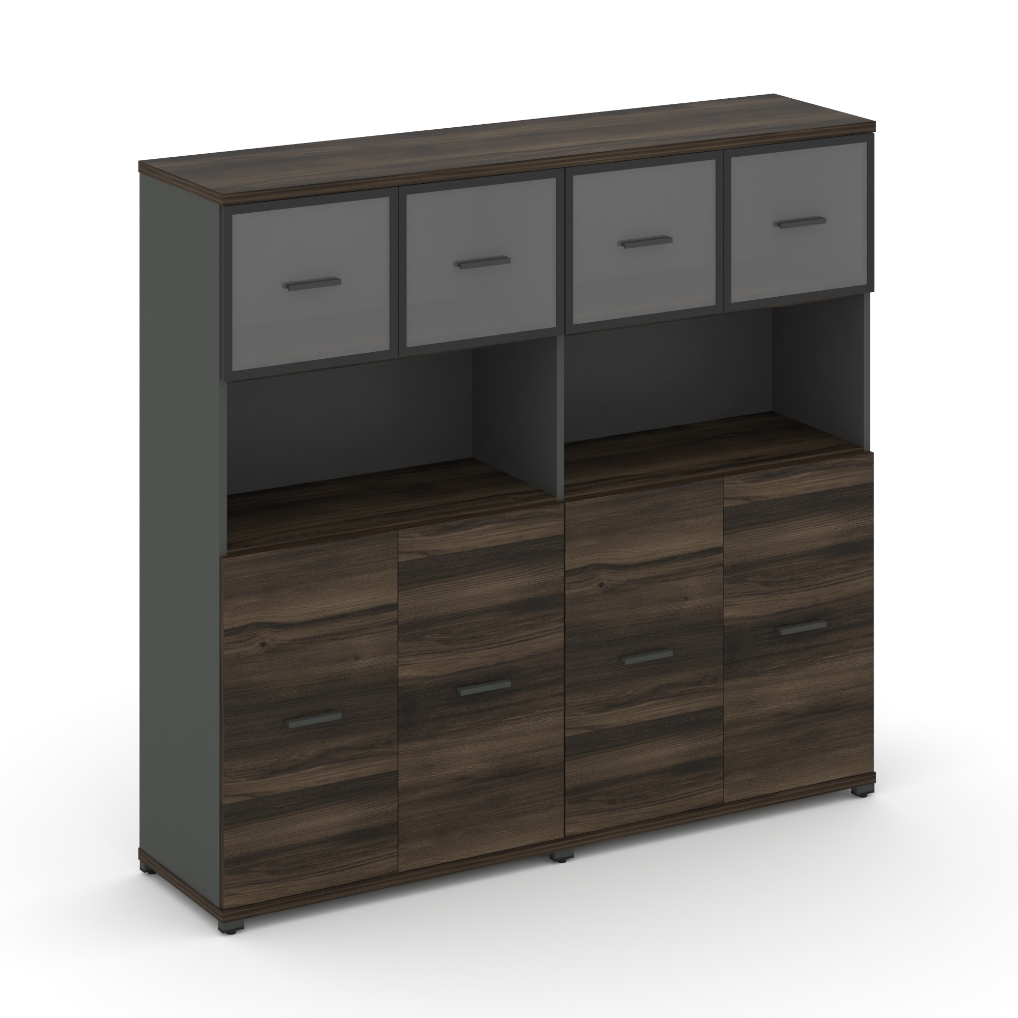 Concept Шкаф 2 широкие секции, 4 ниши CN.STS-425 RPB A Дуб Мали/Антрацит/Металл Антрацит/Прозрачный