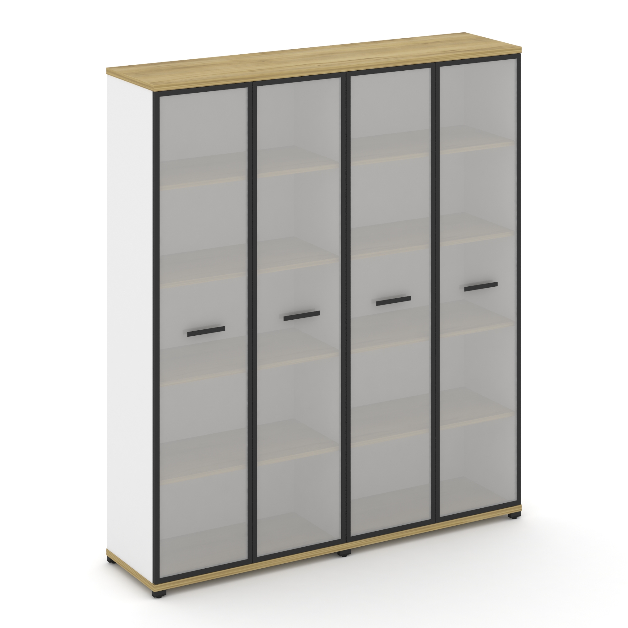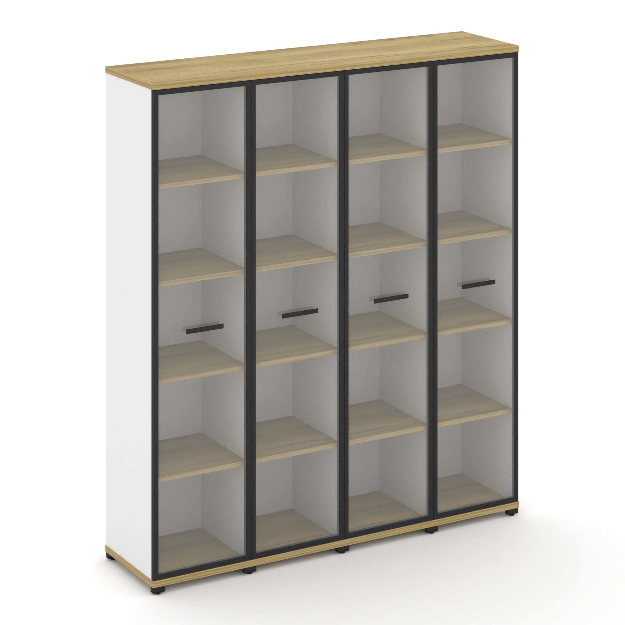 Concept Шкаф 4 узкие секции, 5 ниш CN.STU-548 RPB B Дуб Винченцо/Белый Бриллиант/Металл Черный/Прозр