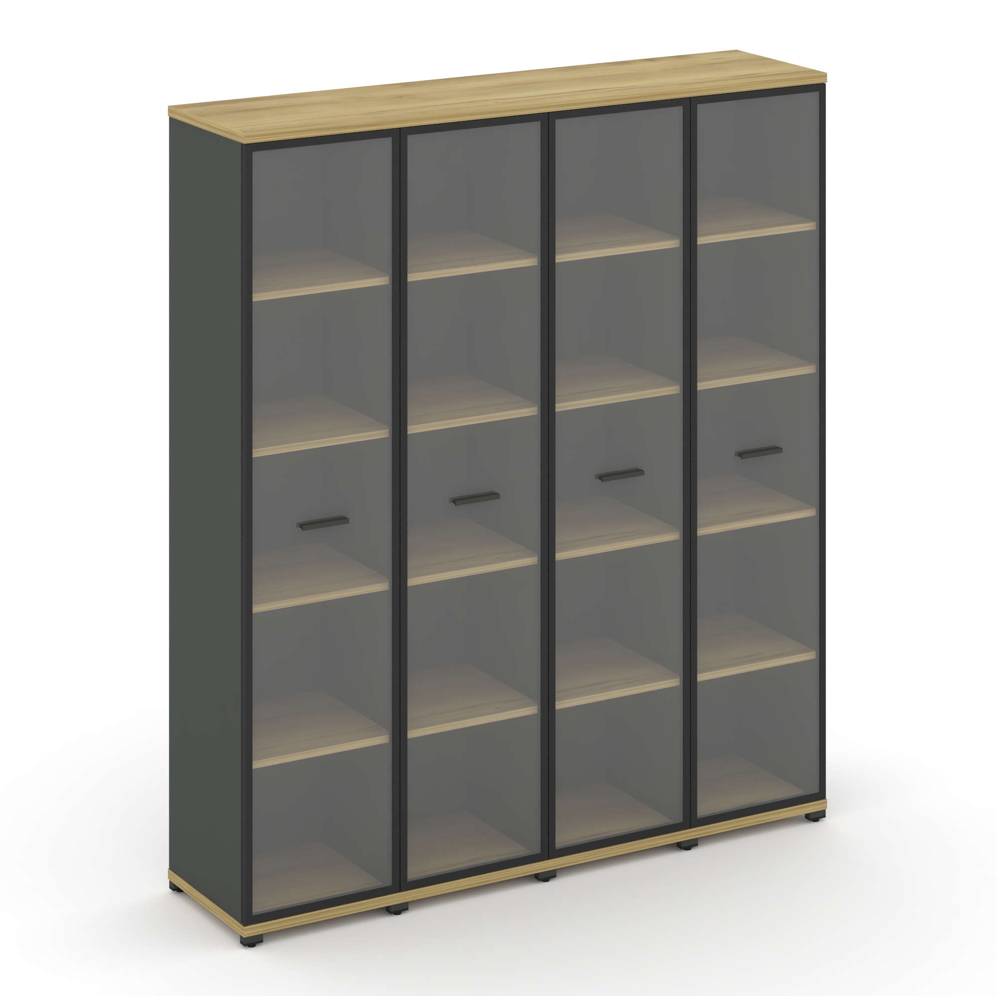 Concept Шкаф 4 узкие секции, 5 ниш CN.STU-542 RPB A Дуб Мали/Антрацит/Металл Антрацит/Прозрачный 166