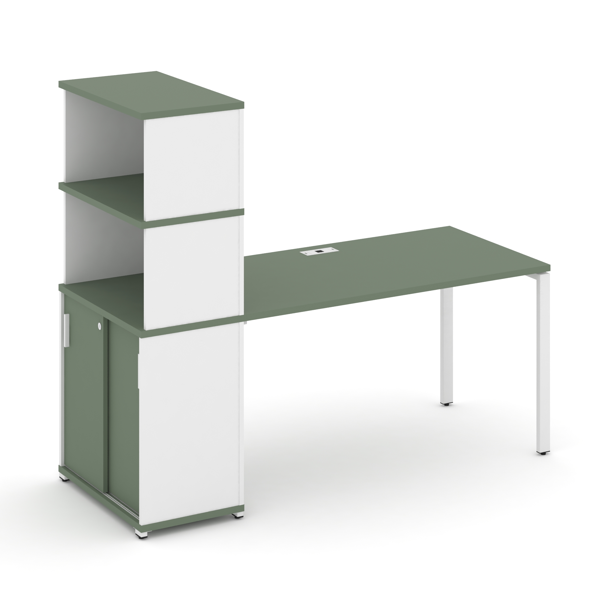 Concept Стол рабочий с опорным распаш. шкафом с надставкой выс. CN.SP-232 W Кобо/Металл Белый 2000*7