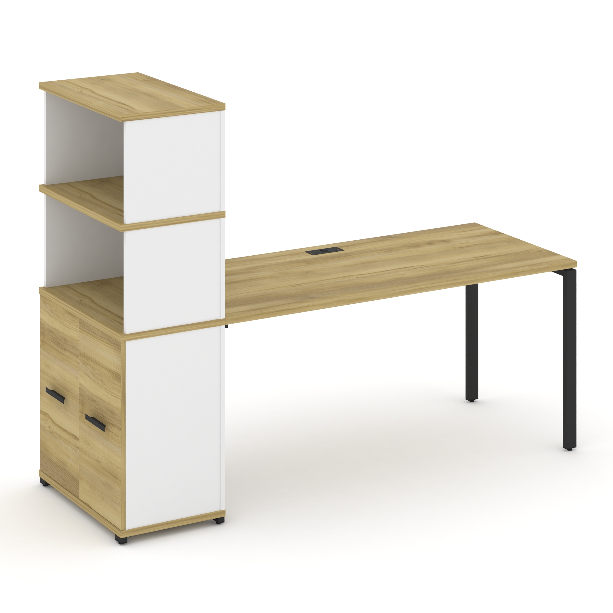 Concept Стол рабочий с опорным шкафом-купе с надставкой выс. CN.SP-244 W Кобо/Белый Бриллиант/Металл