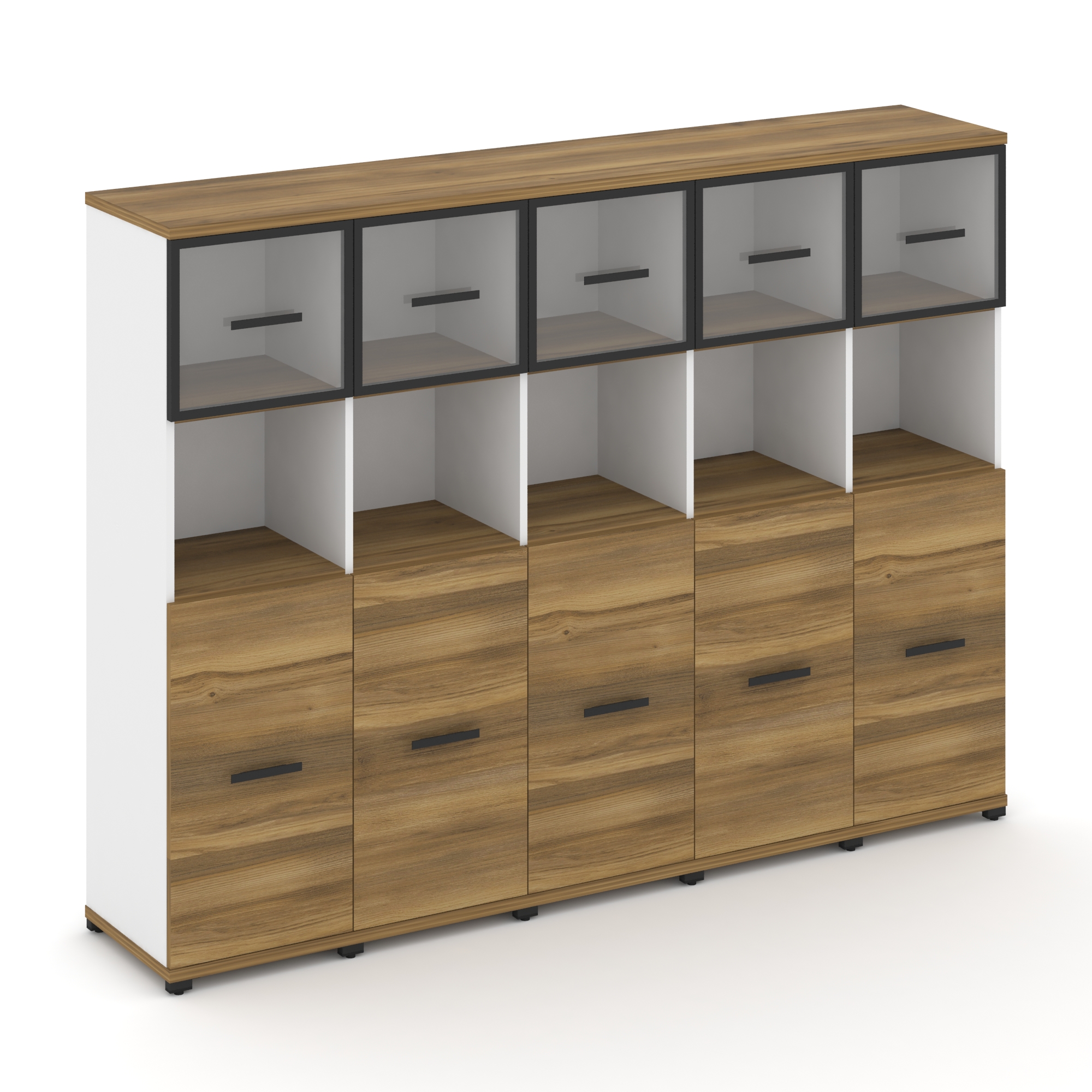 Concept Шкаф 5 узких секций, 4 ниши CN.STU-456 RMB B Дуб Мали/Белый Бриллиант/Металл Черный/Сатин 20