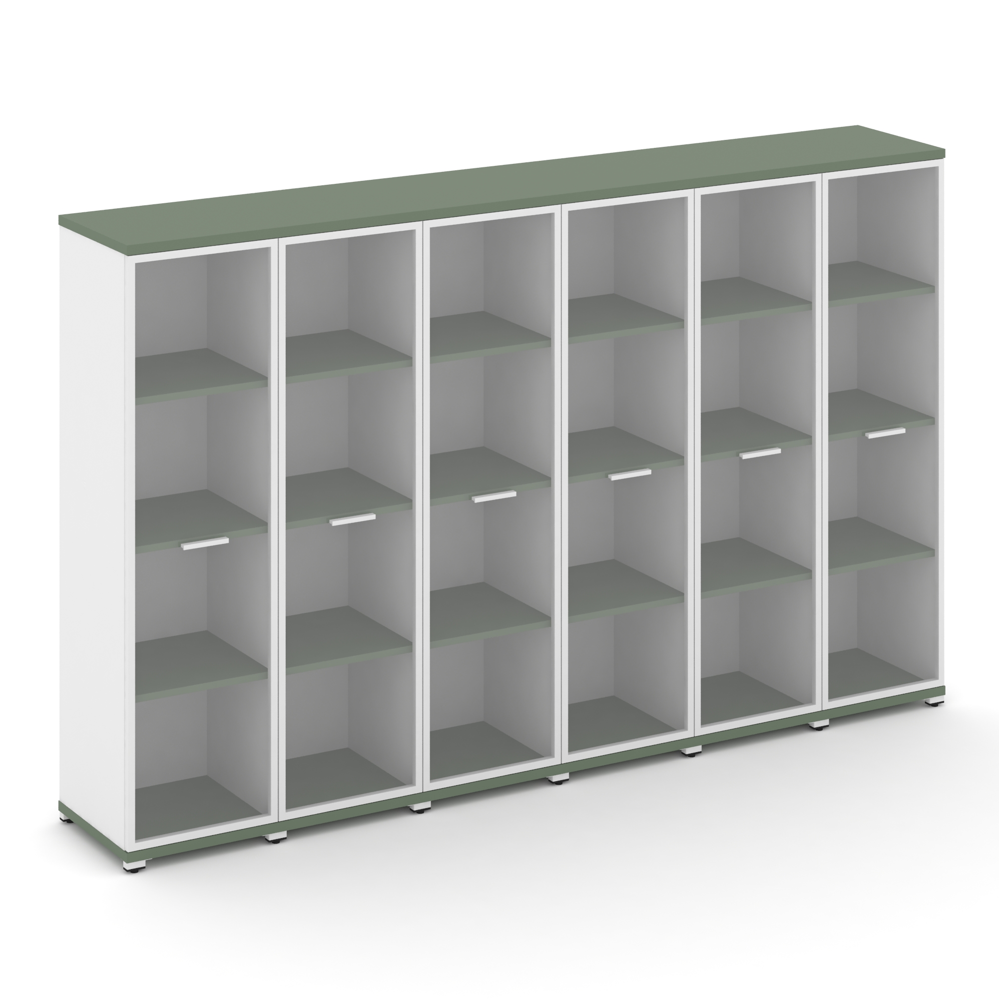 Concept Шкаф 6 узких секций, 4 ниши CN.STU-466 RPW W Кобо/Белый Бриллиант/Металл Белый/Прозрачный 25