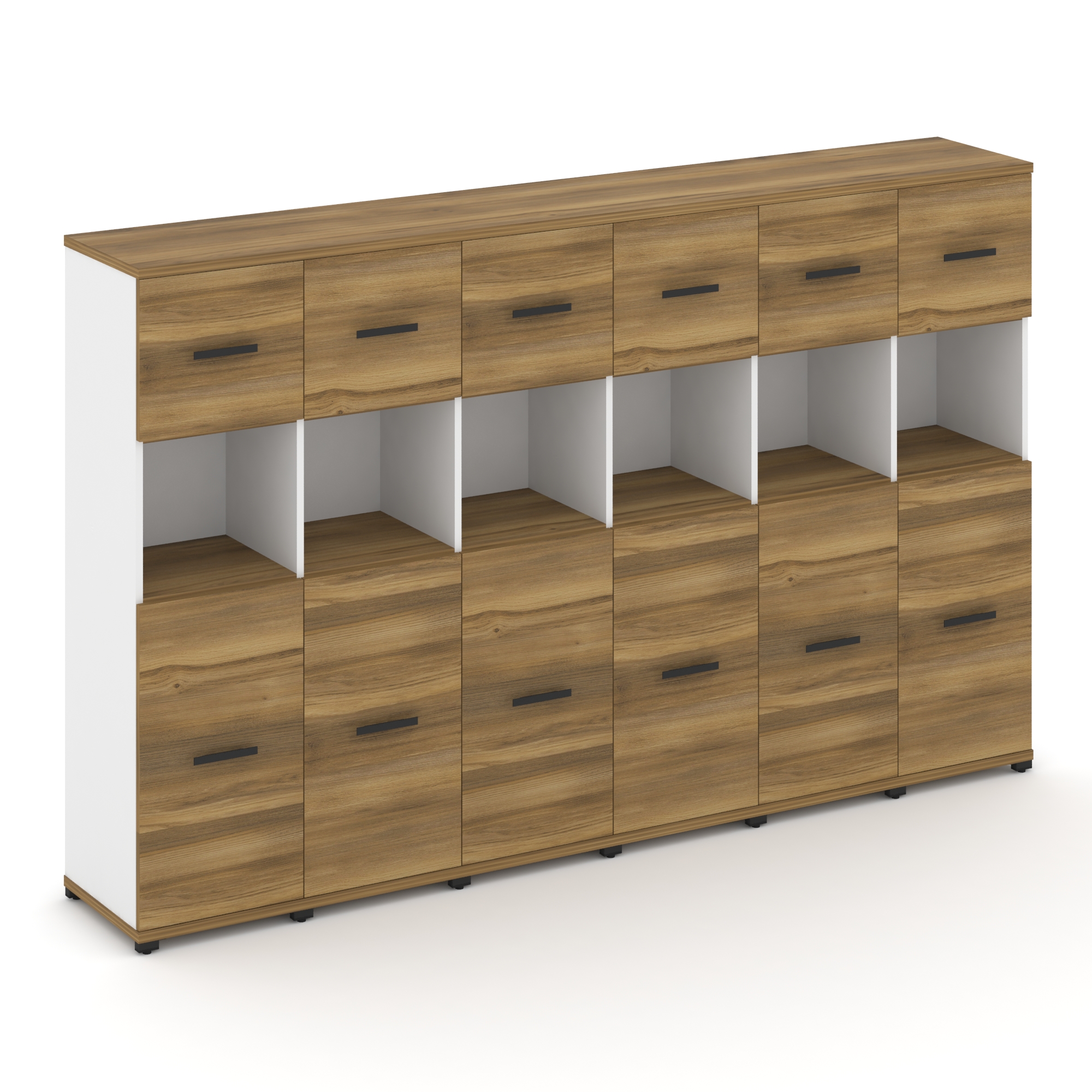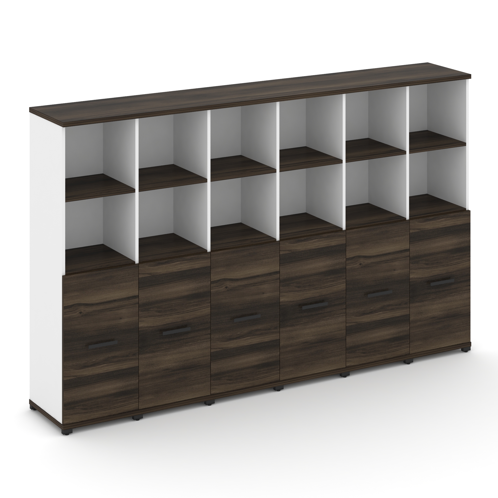 Concept Шкаф 6 узких секций, 4 ниши CN.STU-461 B Дуб Мали/Белый Бриллиант/Металл Черный 2500*420*155