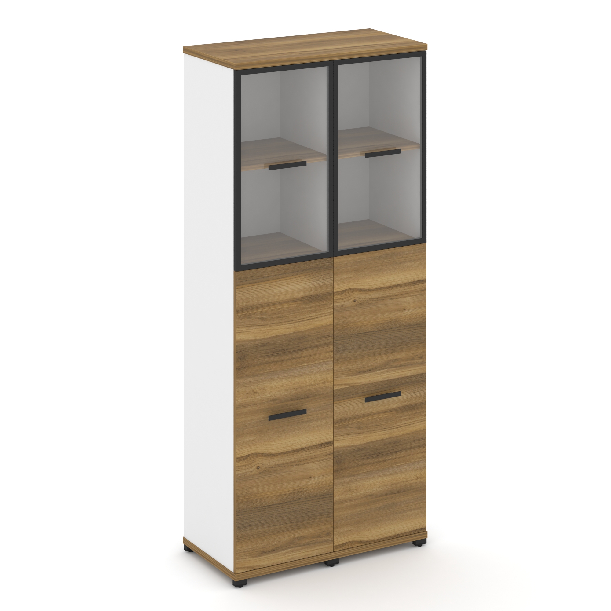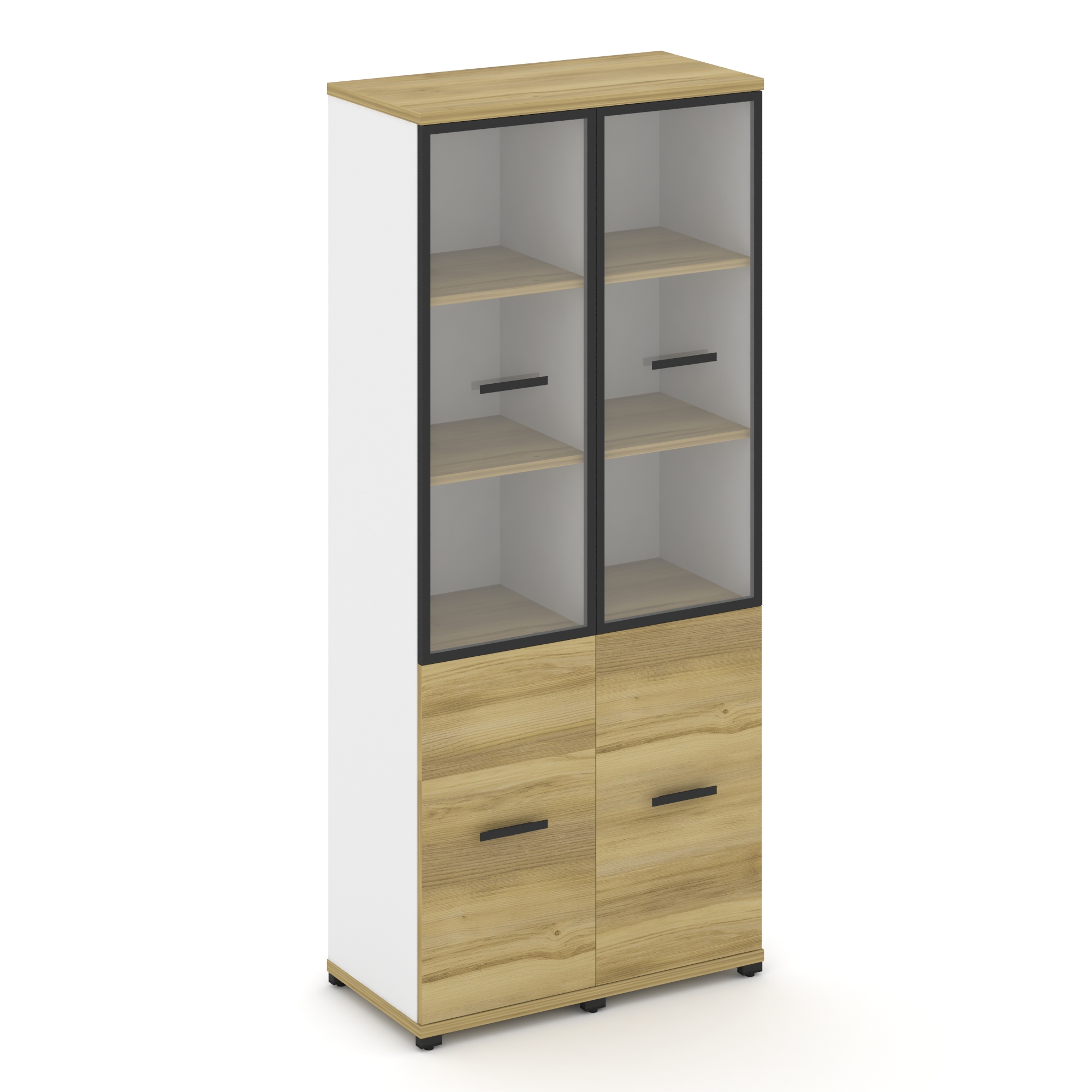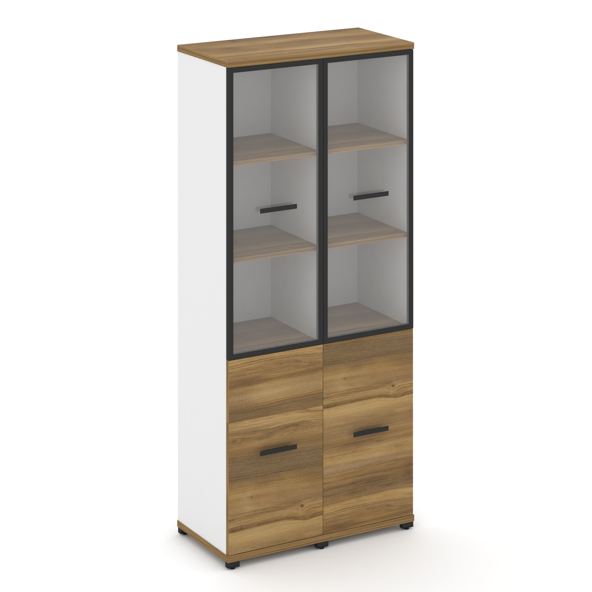 Concept Шкаф 2 узкие секции, 5 ниш CN.STU-522 RPB B Дуб Винченцо/Белый Бриллиант/Металл Черный/Прозр