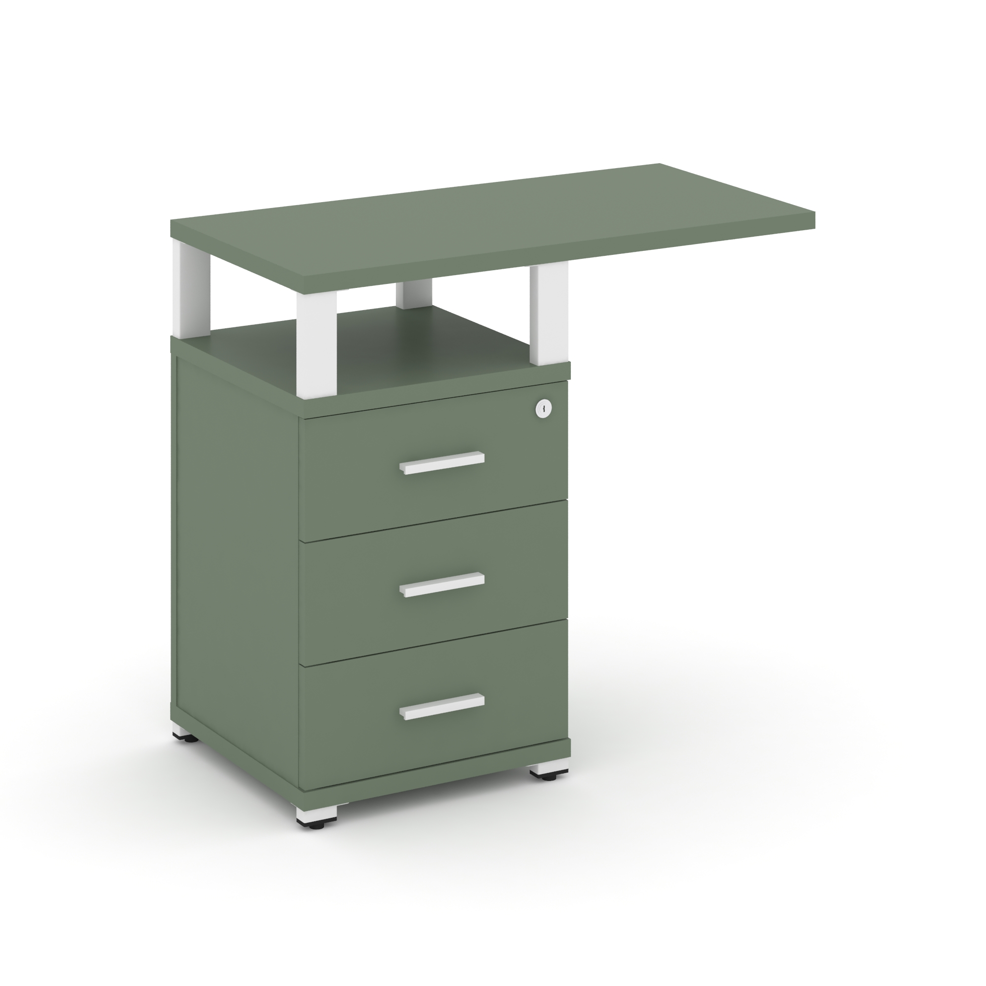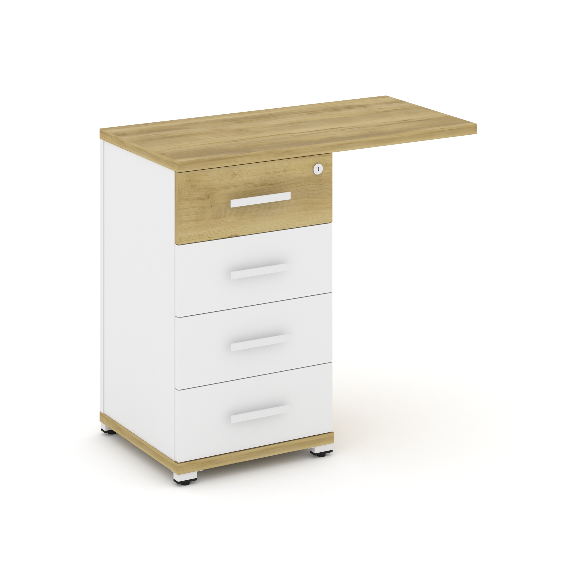 Concept Тумба приставная узкая 3 ящ. со свесом. с надставкой широкой CN.TUS-002 W Кобо/Металл Белый