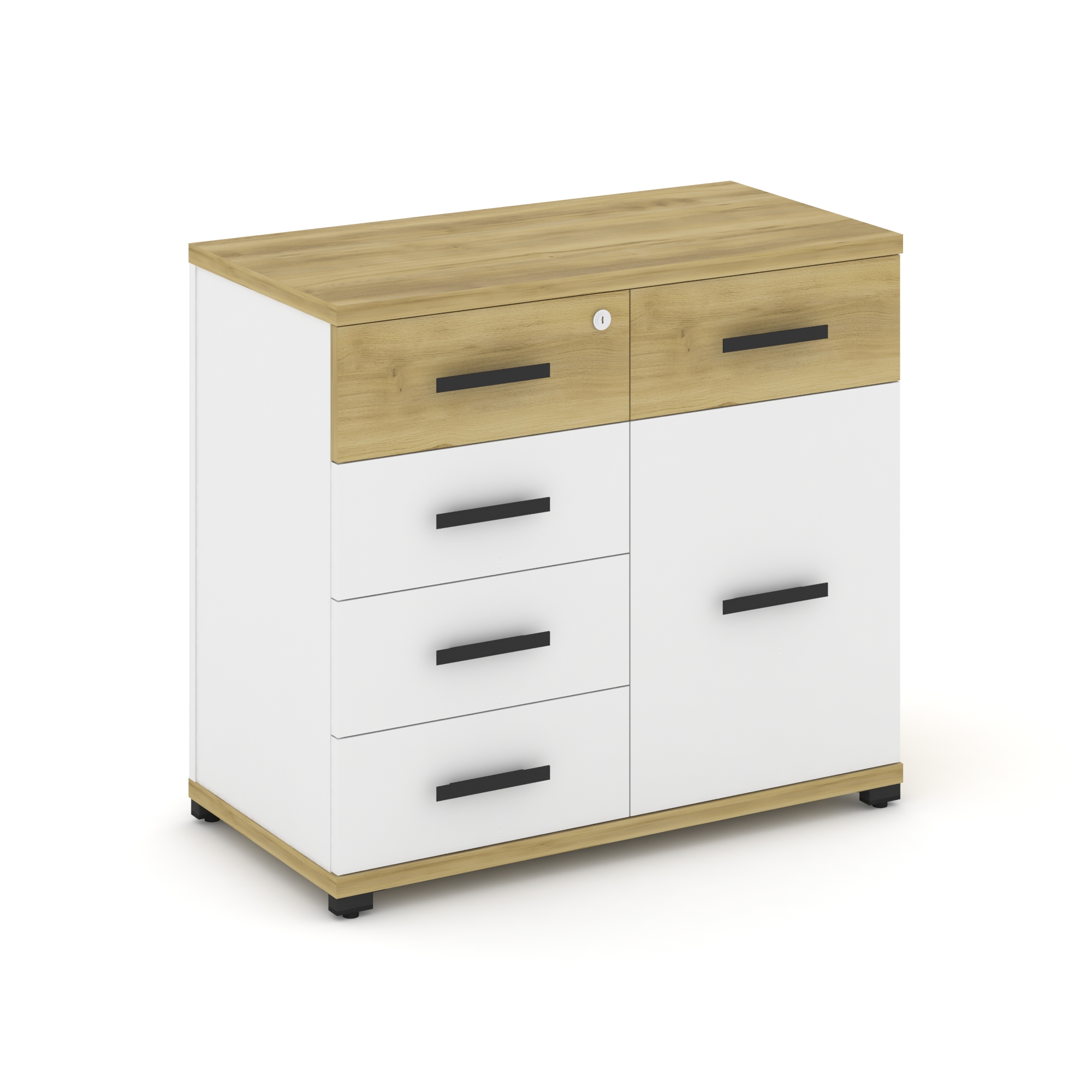 Concept Тумба приставная широкая 5 ящ.+1 распаш. фасад CN.TSP-016 B Дуб Винченцо/Белый Бриллиант/Мет