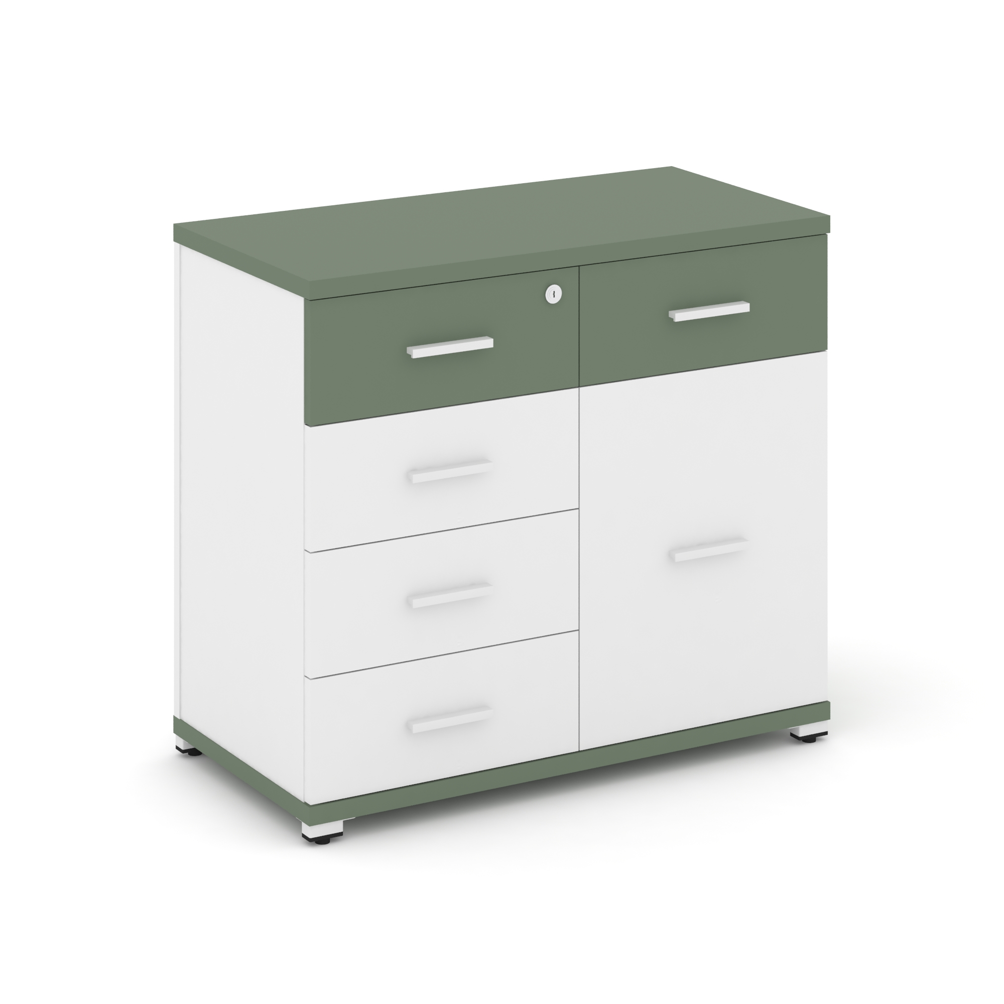 Concept Тумба приставная широкая 4 ящ.+1 распаш. фасад с надставкой узкой CN.TSP-011 W Кобо/Белый Бр